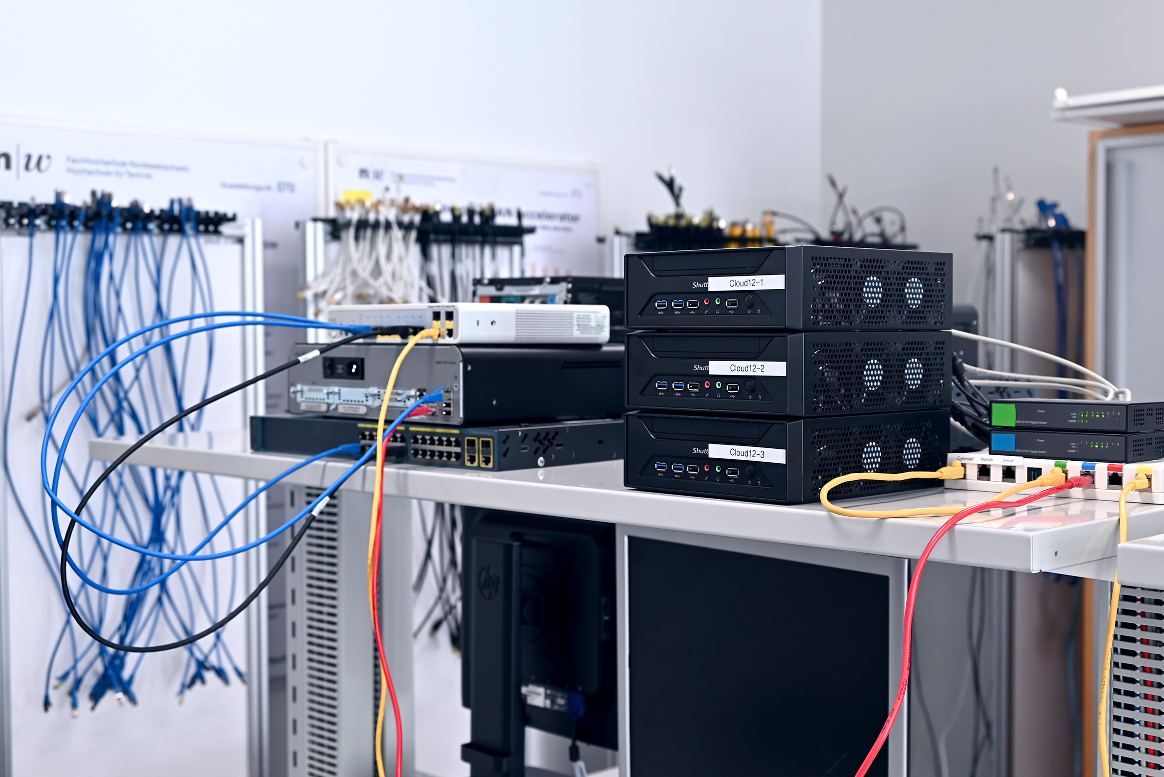 Das Labor bietet die Möglichkeit, nicht nur traditionelle Technologien wie die Konfiguration und Diagnose von Routern und Switches zu trainieren, sondern auch neuere Konzepte wie Software Defined Networks (SDN), virtualisierte Systeme oder verteilte Dienste realitätsnah zu erleben und in Laboraufgaben entsprechend zu behandeln.
