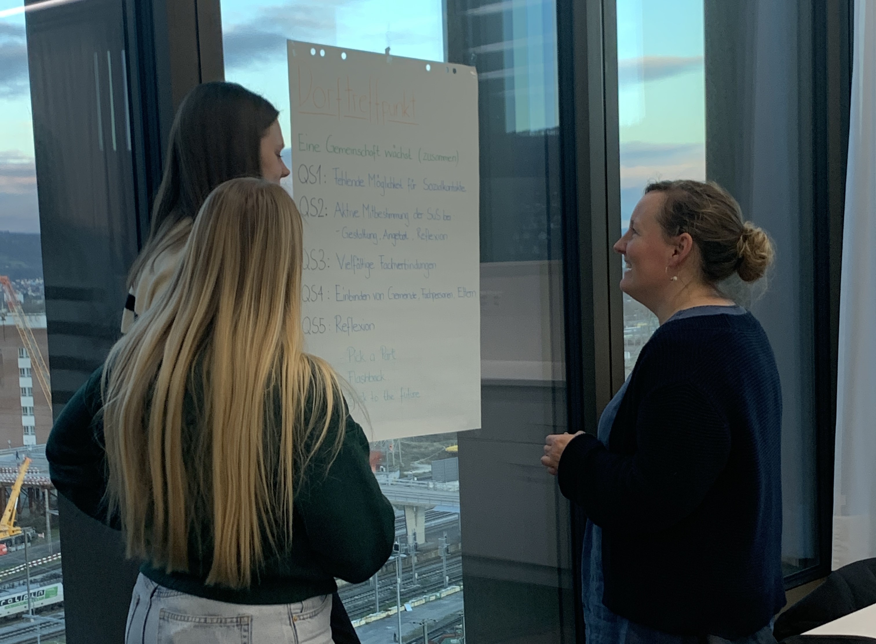 - Fortlaufende Reflexion der Tätigkeiten und Austausch mit der Veranstaltungsleitung zum Arbeitsfortschritt, Probleme und Erfolge.