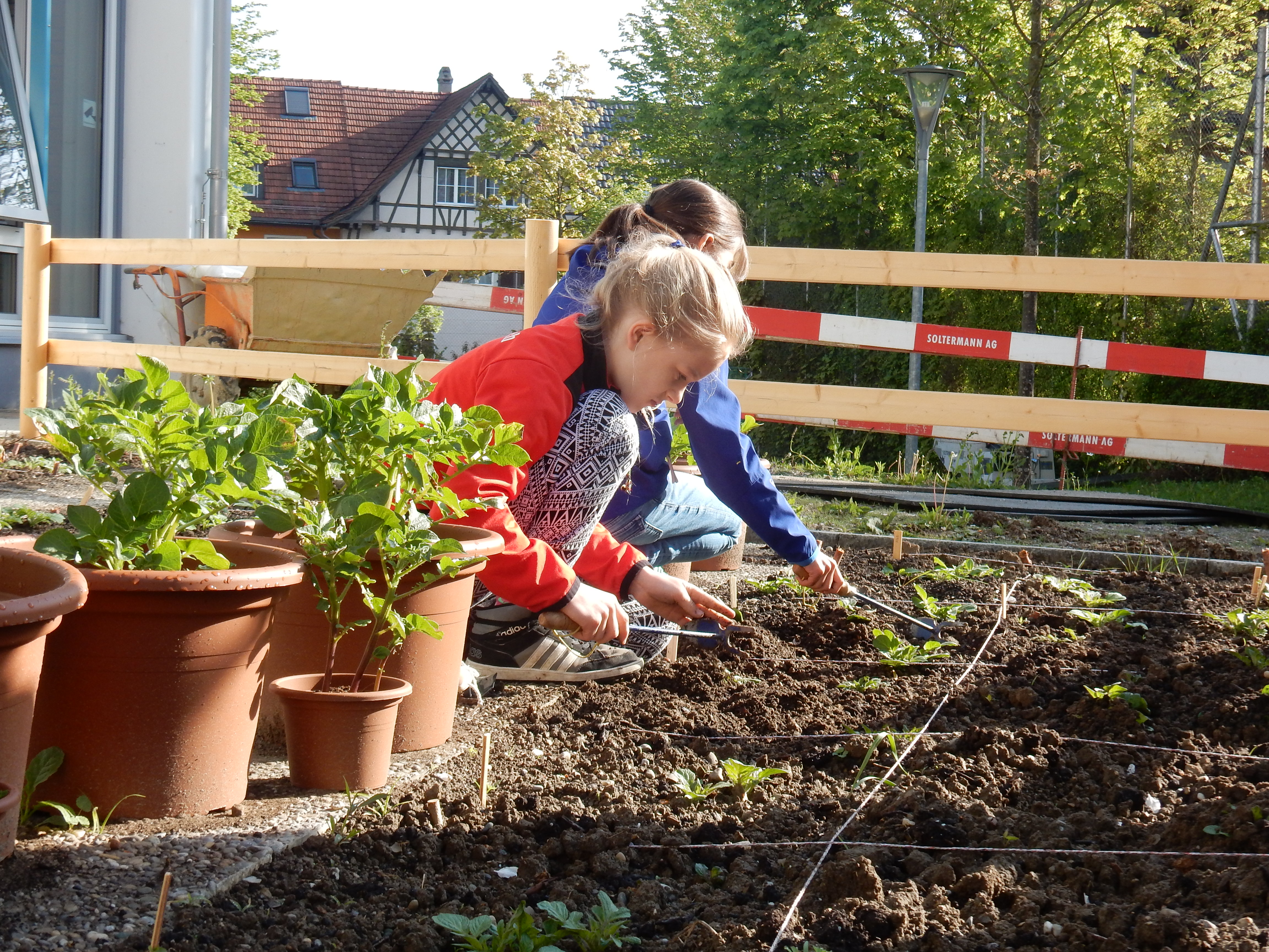 Viele BNE-Unterrichtsinhalte lassen sich in einem Schulgarten verdeutlichen. Neben anschaulichem Wissensaufbau lernen die Kinder sich handelnd zu engagieren und eigene Vorstellungen und Visionen zu entwickeln. Ein Schulgarten bietet unzählige Möglichkeiten für die Lernenden, sich mit lokalen sowie globalen Themen zu beschäftigen und nachhaltige, zukunftsorientierte Lösungsansätze zu erarbeiten.