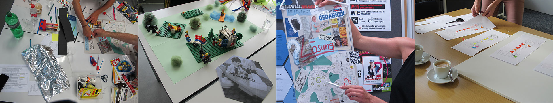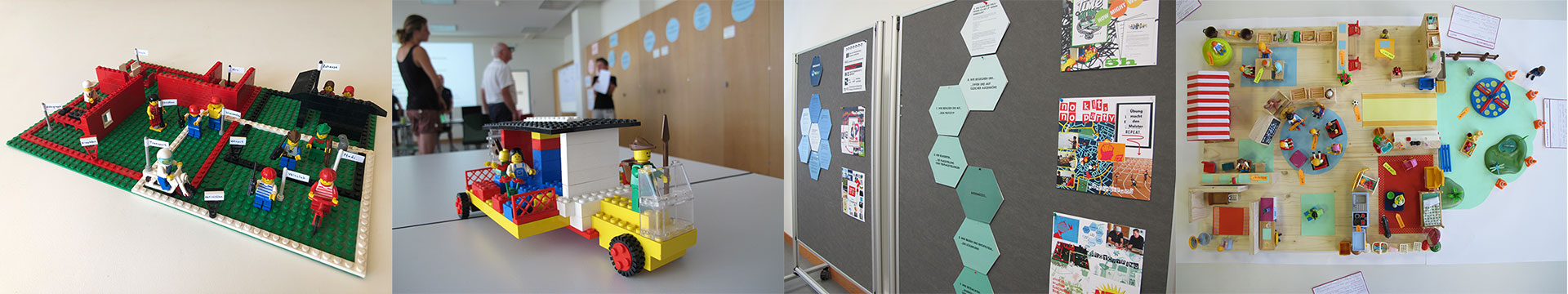 «Der Prototyp beim Einstieg ins Thema half, die Komplexität des Sachverhalts (Ist-Situation) kurz, klar und verständlich darzustellen. Die entstandenen Prototypen zeigten die verschiedenen Lösungen verständlich auf.» (TN Denkraum «aktiv werden»)