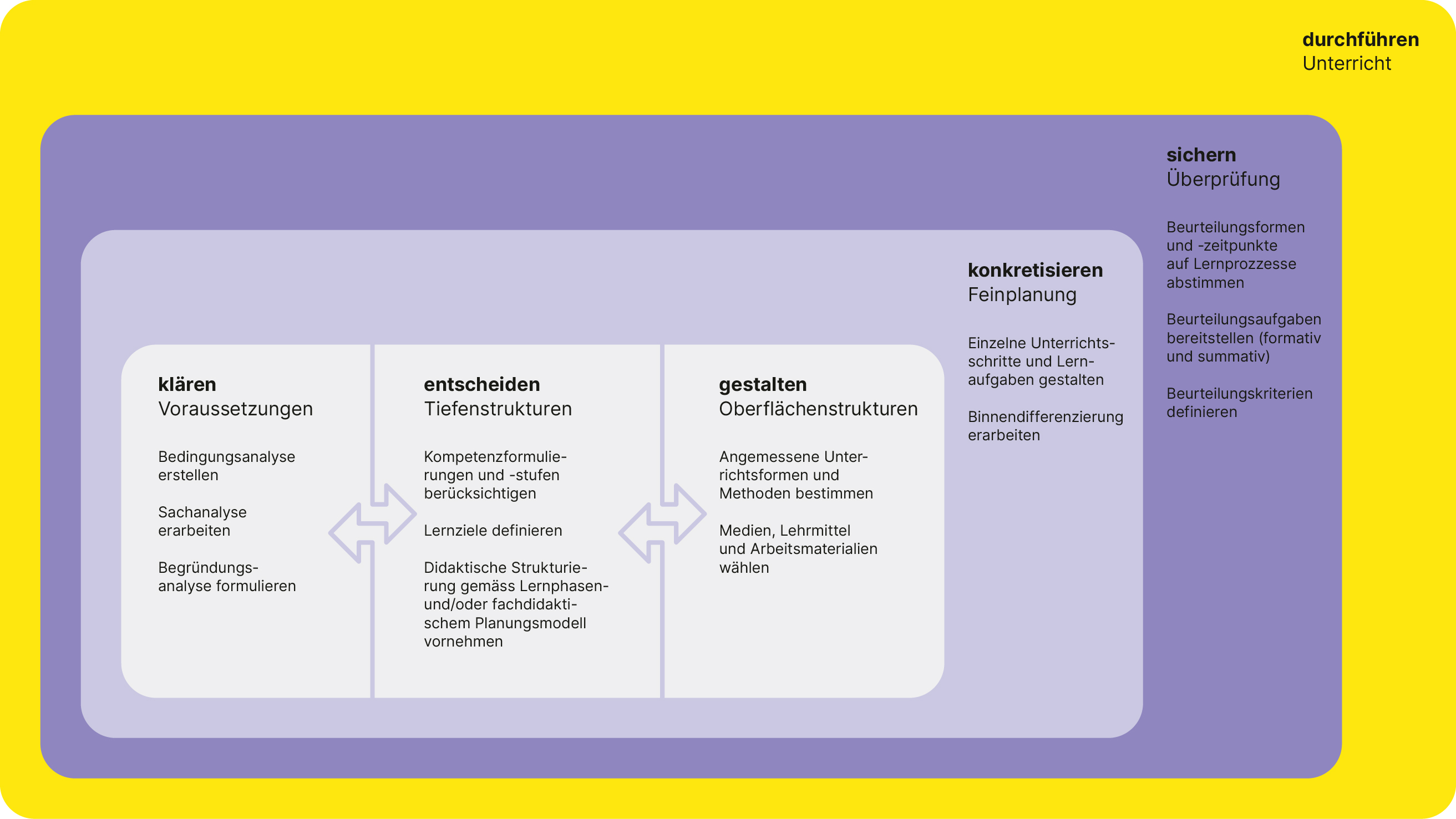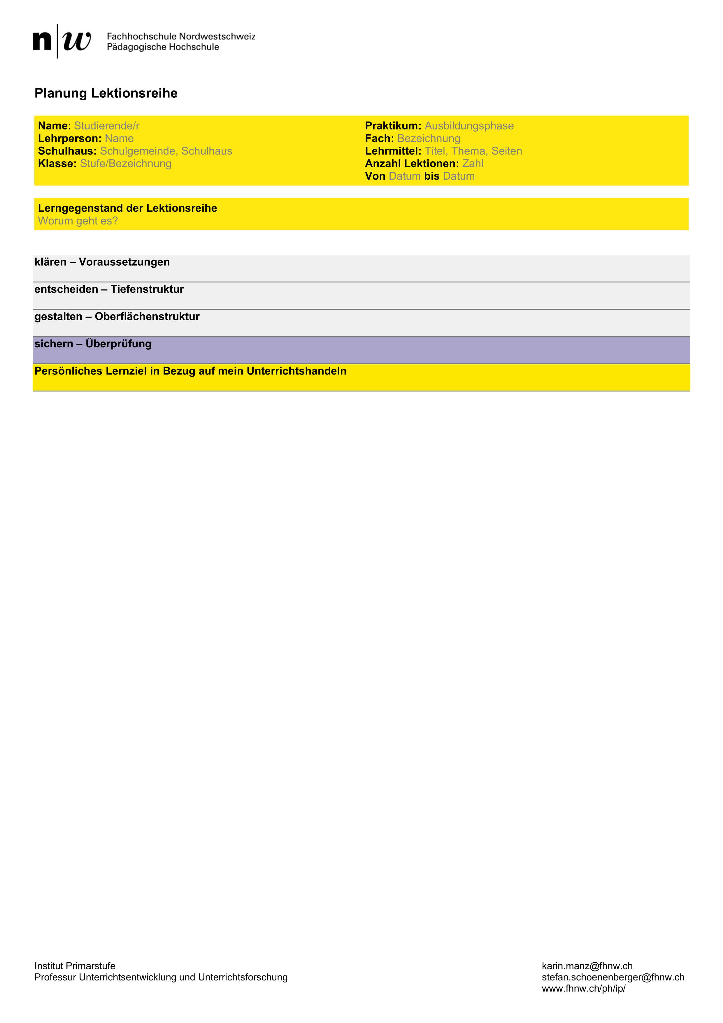 Die Professuren am Institut Primarstufe unterstützen den Planungsprozess mit fachspezifischen Materialien: Tutorials, kommentierte Planungen, Good practise-Beispiele etc. Bislang wird die Website von sechs Fächern bespielt: Bewegung und Sport, Deutsch, Englisch, Französisch, Mathematik und Musik. Die Erziehungswissenschaften und Entwicklungspsychologie setzen den allgemeinen Rahmen.