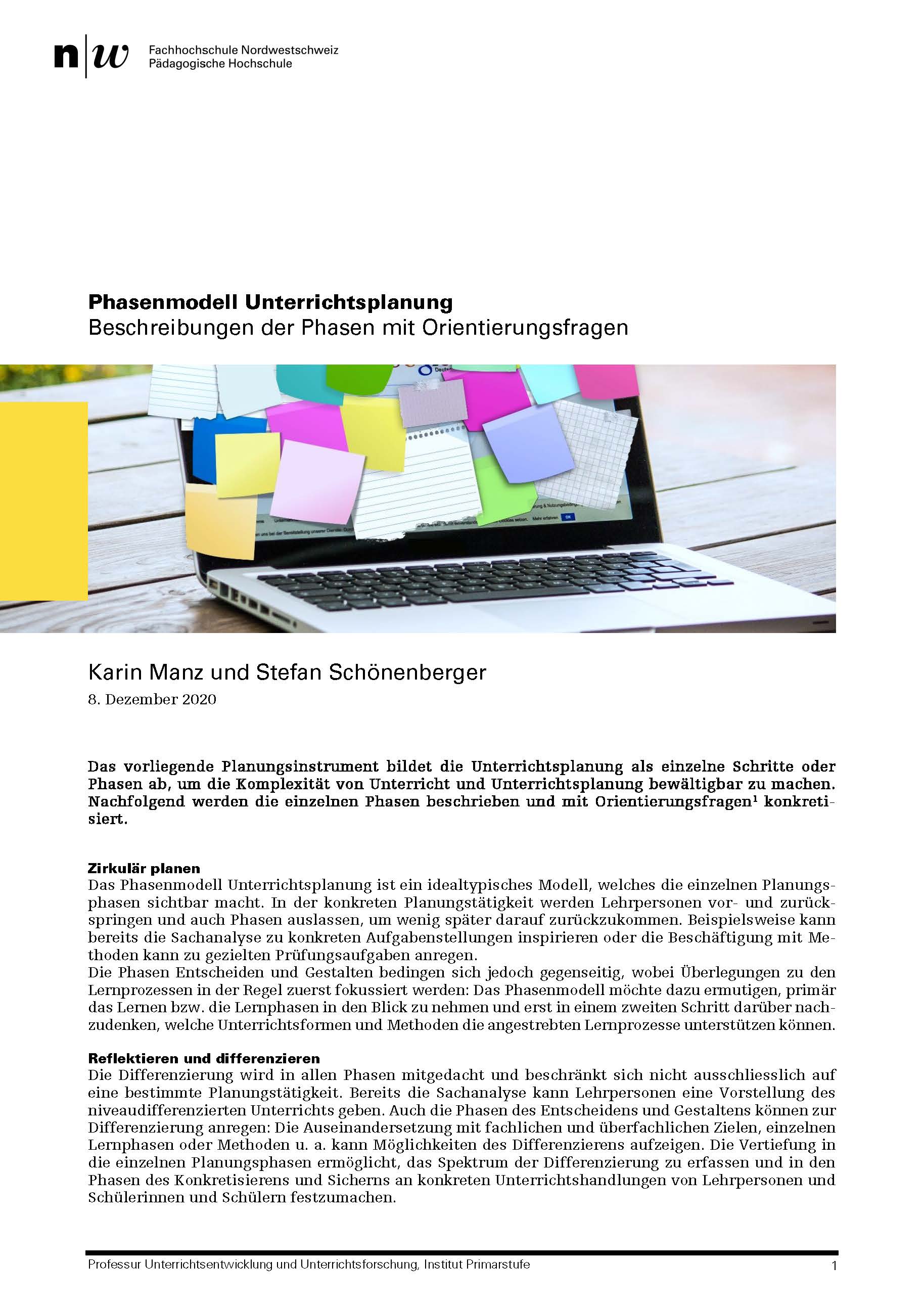 Einführung in das Phasenmodell Unterrichtsplanung | Das Wichtigste in Kürze: Beschreibung der Leitprinzipien und Phasen des Modells | |