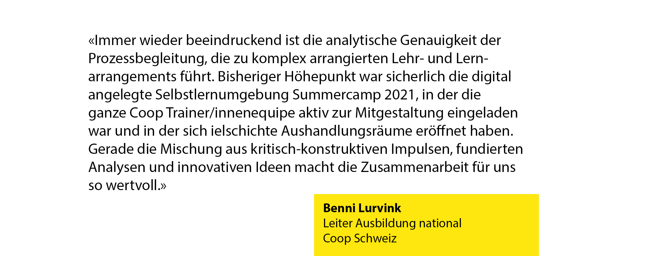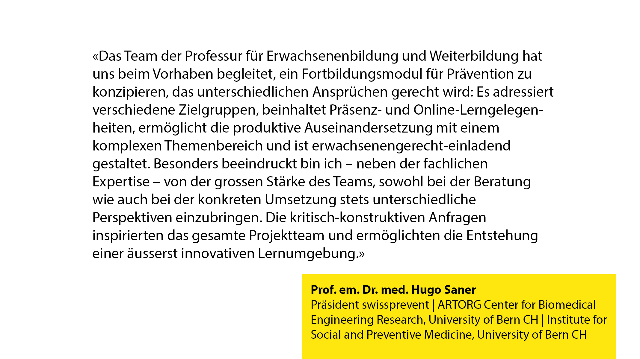 - Weiterbildung und Begleitung von Dozierenden, Trainerinnen/Trainern und Kursleiterinnen/Kursleitern.