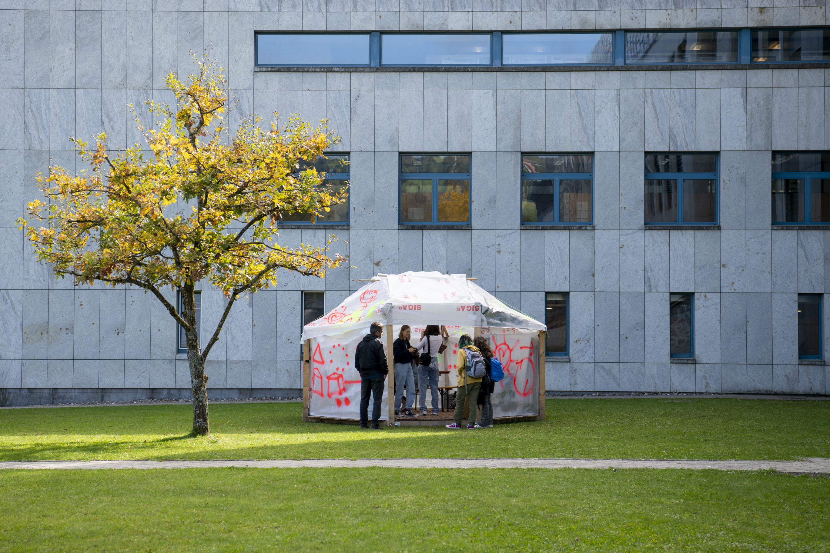 Vom 22. bis 26. Mai 2023 gastiert auf Einladung von phkultur die Künstlerin Marinka Limat mit ihrem Projekt «ESCALE» auf dem Areal des Campus Muttenz. «ESCALE» ist ein mobiler Pavillon, den die Künstlerin errichtet, um Studierenden, Mitarbeitenden und Anwohner*innen einen Zwischenhalt zu offerieren. Als offener Aktionsraum konzipiert, ermöglicht er den Besucher*innen spannende Begegnungen und unvorhersehbare Momente.