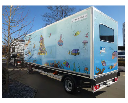 Im Infomobil «Bücher auf Achse» wird jährlich ein komplett neues Sortiment der aktuellsten Bücher und Medien für Kinder und Jugendliche aller Altersstufen präsentiert.