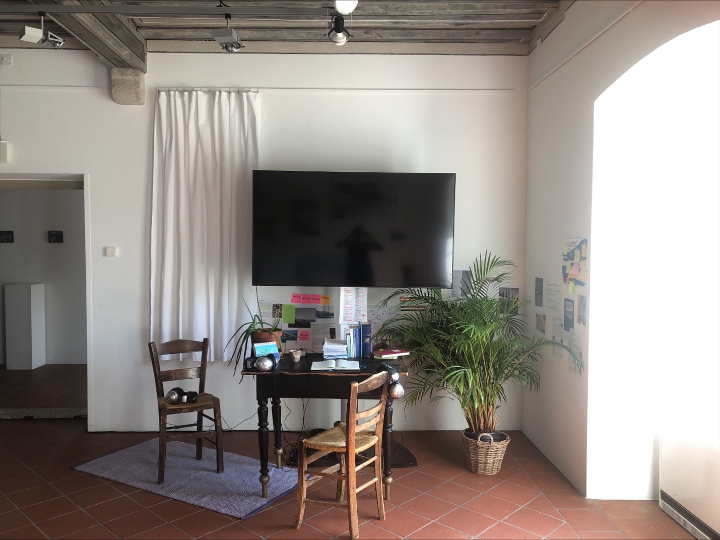 In einer Videoinstallation präsentiert Elina Lerch Auszüge aus dem Romanmanuskript "Damals unterm Feigenbaum".