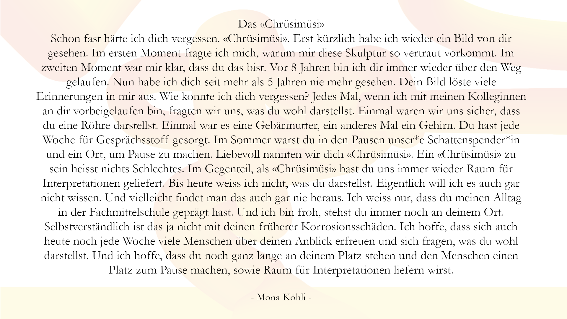 Galerie1.pngAlessio Heberich.png2.pngChrüsimüsi Mona Köhli.png3.pngcomming soon.pngDas solothurner Ding Tamara Häuser.png4.pngDas solothurner Ding Thomas Senkbeil.pngdasobskureobjektderpädagogik.pnghinabhinau und hinein Gina de Pellegrini.png5.pnghirn.pngmirjam oberholzer.pngMomo Schraner.pngNadja Rothenbühler.pngObjekt solheure gerit schütz.pngobjekt solheure peter keller.png6.pngSachen in Sachen Elina Lerch.png
