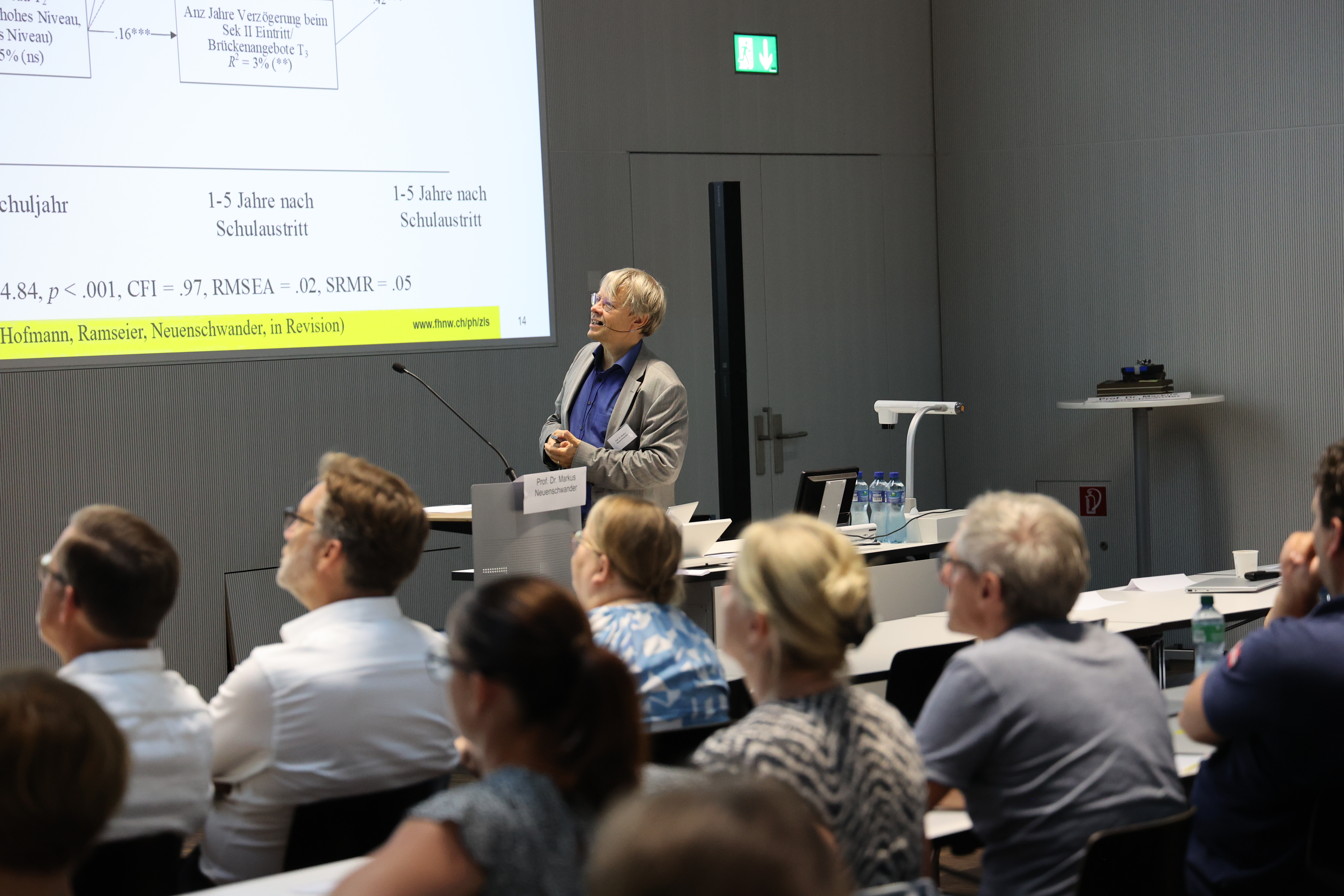 Markus Neuenschwander, Leiter des Zentrums Lernen und Sozialisation der PH FHNW und Leiter der Studie, wies in seinem Referat auf Herausforderungen beim Übergang von der Schule in die Erwerbstätigkeit hin und strich unter anderem folgende Ergebnisse heraus: