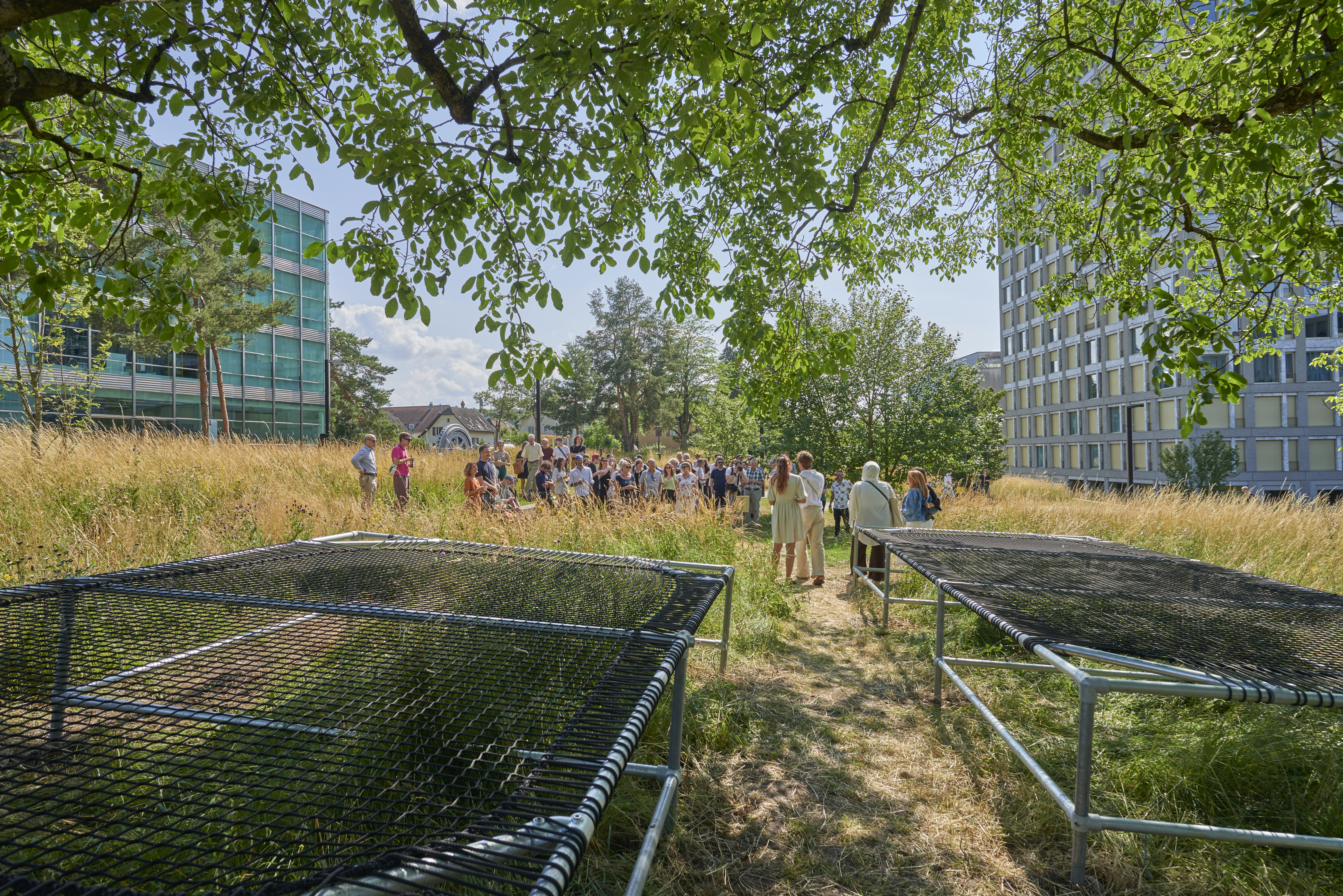 Die Studierende des zweiten Semesters Studiengangs Innenarchitektur und Szenografie der Hochschule für Gestaltung und Kunst Basel FHNW und das Team "FHNW ImFreien" Campus Brugg-Windisch realisierten Aufenthalts- und Begegnungslandschaften.