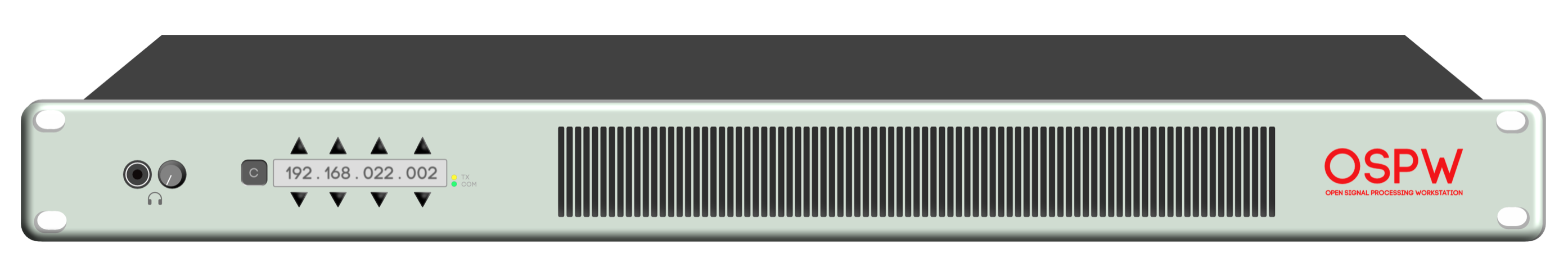 Im Zentrum des Forschungsprojekts OSPW (Open Signal Processing Workstation) steht die Entwicklung eines hochspezialisierten Computers für die parallelisierte Verarbeitung von Multikanal-Audiosignalen in Echtzeit. Die offene Systemarchitektur wird es erlauben, jegliche Art von digitaler Signalverarbeitung (DSP) zu realisieren und in bestehende Studio-, Live- und Installationsumgebungen zu integrieren. Die OSPW fügt sich dabei als frei programmierbarer DSP-Server in einem Audionetzwerk aus verschiedensten Endgeräten ein (bspw. zwischen Mischpult, Mikrofonen, Lautsprechersystem und Tablet-Computer). Zu berechnende Prozesse werden von einer beliebigen Stelle aus an den DSP-Server weitergeleitet, dort ausgeführt und das berechnete Signal an geforderter Stelle zur Verfügung gestellt.
