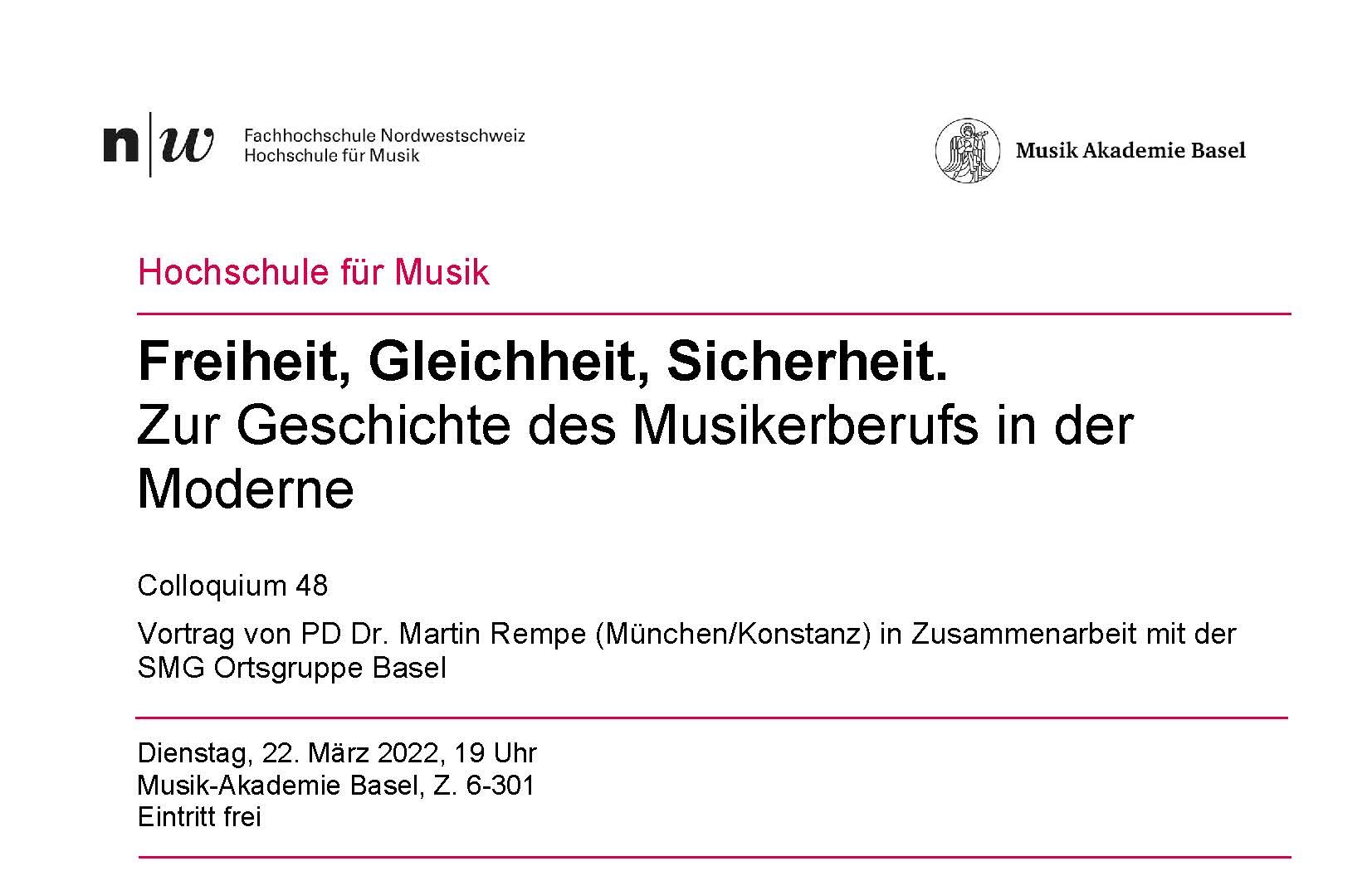 Archiv20:21 Rhythms of HistoryColloquium 48 mit Johannes Kreidler / Dienstag, 29. März 2022, 19 Uhr Musik-Akademie Basel, Z. 6-301Freiheit, Gleichheit, Sicherheit. Zur Geschichte des Musikerberufs in der ModerneColloquium 48 - Vortrag von PD Dr. Martin Rempe (München/Konstanz) in Zusammenarbeit mit der SMG Ortsgruppe Basel / Dienstag, 22. März 2022, 19 UhrSymposium The Art of the String Multiphonic27. & 28.01.2022 – Workshops, Lectures & ConcertBinaural Audio for Augmented Reality on mobile devices16. Dezember 18.30 Uhr – Vortrag von Thomas ReschABGESAGT _ Introducing Cello MappDi 17.3.20, 19 Uhr, Musik-Akademie Basel, Z. 6-301ABGESAGT _ Introducing OSPW 2.0Fr 20.3.20, 18 Uhr, Studio Eckenstein (Haus 1)Begriffliches Hören11.03.2020, 19:00, Forum Musiktheorie mit Johannes KreidlerUnterrichtslabor18.02.2020, 19:00 Mit Ioana Ilie, Claudio Martinez Mehner und Annekatrin KleinArbeiten mit PousseurSymposium, Workshops, Konzert 28.-30.11.2019Fokus HolligerKonzert, Lectures, Meisterkurs, Ausstellung 24.11.19 – 9.3.2020Ästhetik der Abwesenheit20.06.2019 19:00 – ZeitRäume Lecture mit Heiner GoebbelsOn the Kunsthalle for Music18.06.2019 19:00 – ZeitRäume Lecture mit Ari Benjamin MeyersSymposium Crescendoing Clouds29. & 30.03.2019 Internationale Basler Musikerinnen und Musiker und ihre globalen VerflechtungenKatalin Ladik im KonzertDi 22.01.2019, 20 Uhr, Ackermannshof BaselAlfred WälchliKonzert, Lesung, Diskussion & Wanderung 21.–23.01.2019Soundbricks Präsentation beim Digitalday Baselland 2018Intelligente LautsprecherH.E.I.Guide – 3D SoundwalkDi 10.09.2019 – So 22.09.2019 am Klybeckquai BaselEin Abend mit Wilfried JentzschLecture Recital im Rahmen eines Archivforschungsprojekts zum Künstlerhaus BoswilKinder an die OrgelAnmeldefrist verlängert bis 15. März 2019PHLOXKonzert am 2.10.18 Werke von Benno Amman mit dem Ensemble Soyuz21ParlandoInternationales Symposium zur Musik von Georges AperghisDas linke OhrDer Komponist Jacques WildbergerStudio31 Symposium 24.-25.11.2017