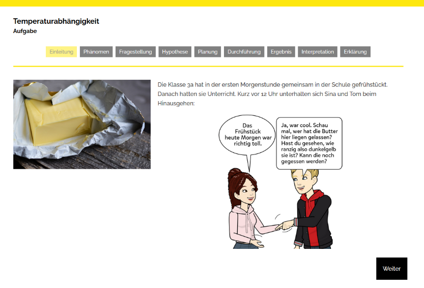 - Vorbereitete Lernumgebung mit vier Experimentieraufgaben zum Thema Enzyme