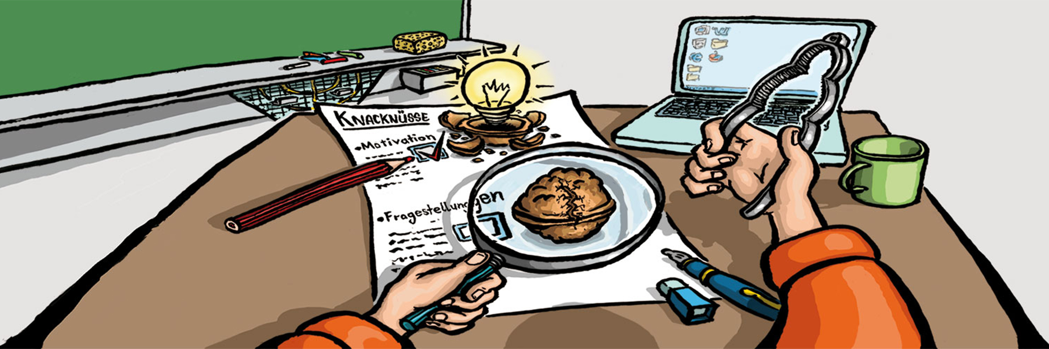 Lehrpersonen werden in ihrem selbstbestimmten Handeln unterstützt: Jede Lehrperson bearbeitet eine pädagogisch-didaktische Knacknuss/Herausforderung des eigenen Unterrichts (z. B. mangelnde Lernaktivität im Unterricht). Ausgehend vom Veränderungsziel plant sie eine Unterrichtsintervention. Sie setzt dabei ein Erhebungsinstrument ein, das die Zielerreichung unterstützt, sichtbar und damit überprüfbar macht (z. B. eine Punktabfrage oder ein Zahlenstrahl).