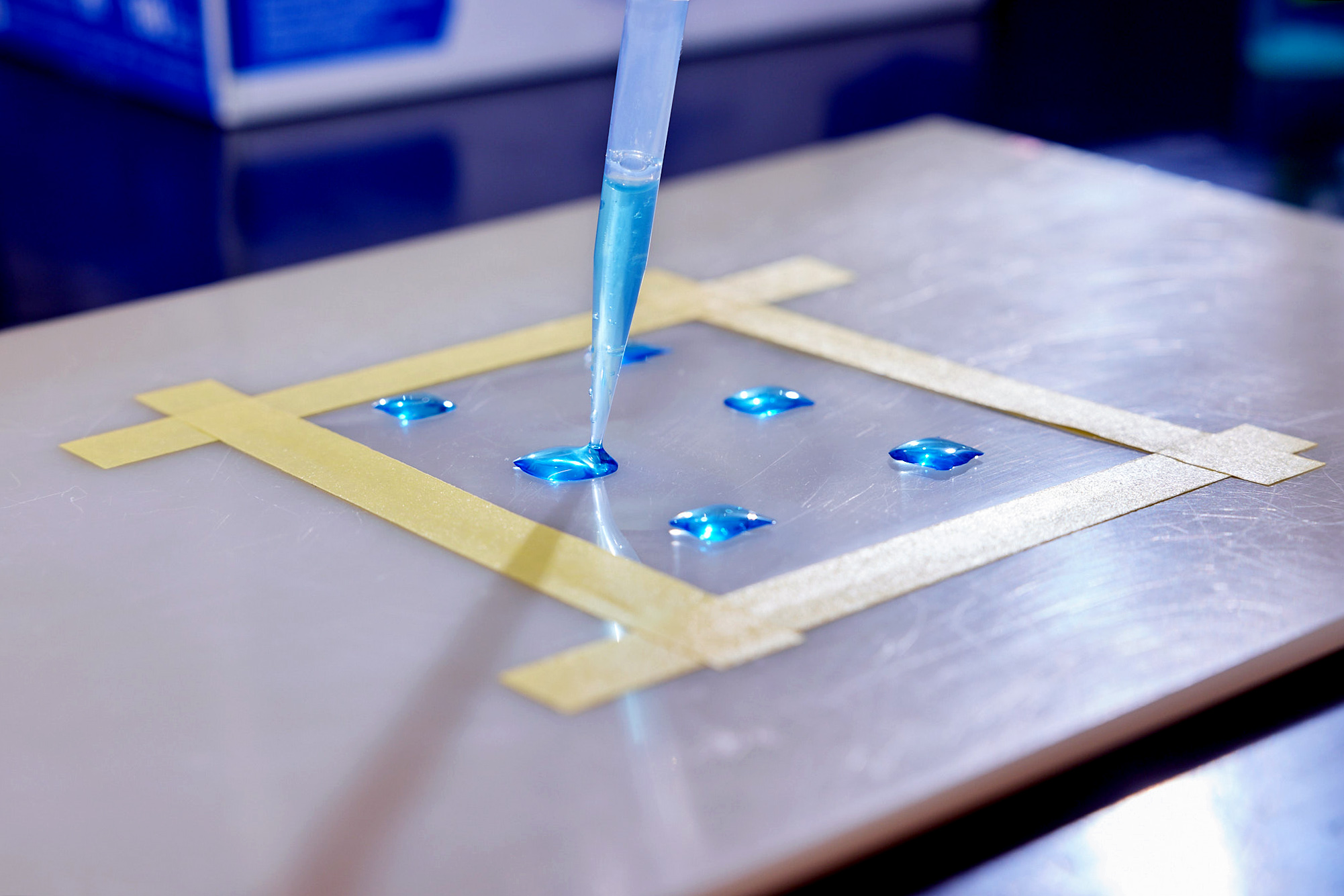 In unserem Functional Coatings Lab ermöglichen wir funktionale Beschichtungen, die mittels Elektronenstrahl-assistiertem Grafting von Hydrogelen, Aushärtung von UV-Lacken oder Plasmapolymerisation hergestellt werden.