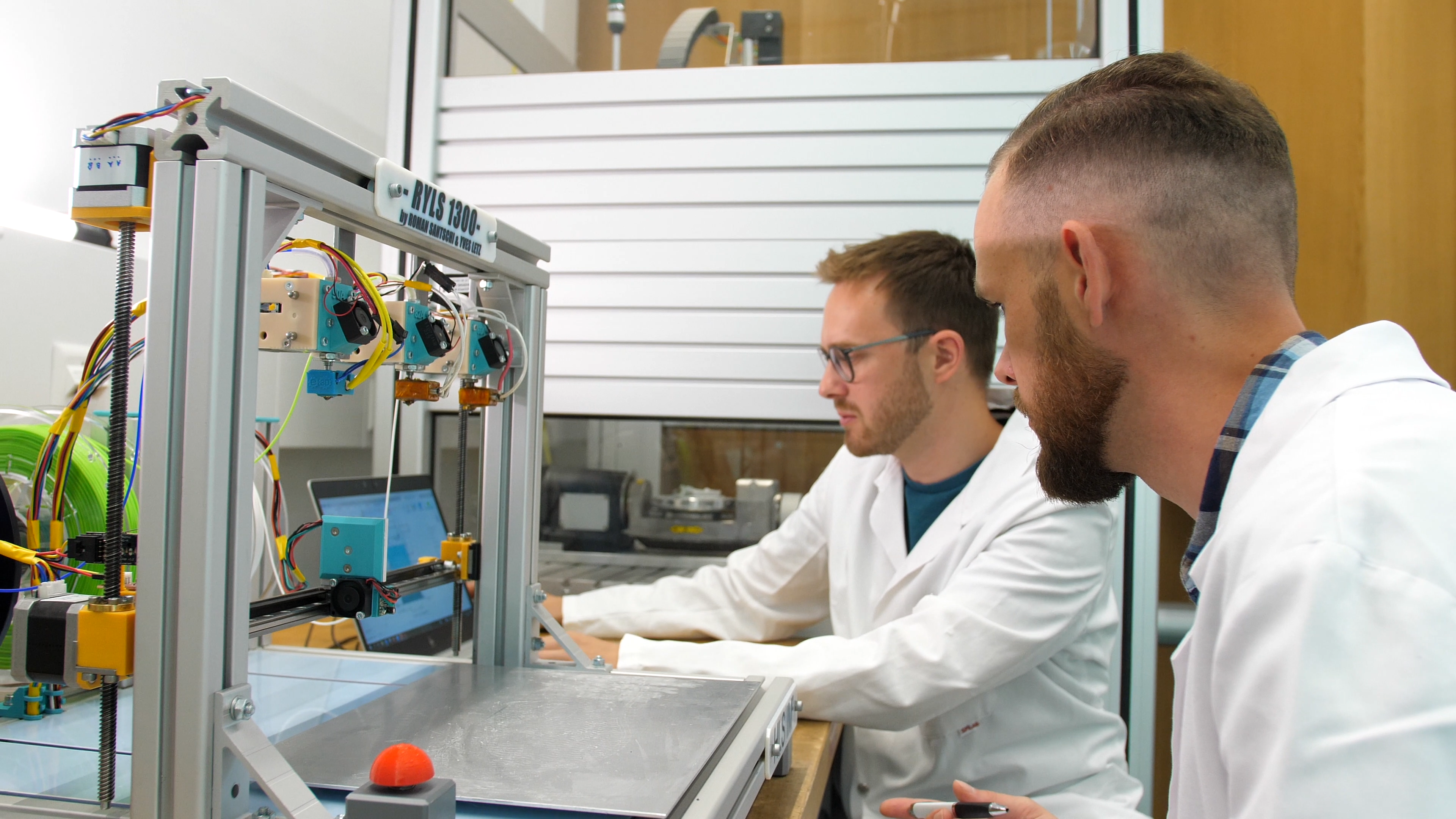«Um die unterschiedlich harten Materialien, die für so eine Fusseinlage benötigt werden, drucken zu können, haben wir spezielle Druckköpfe entwickelt und eingebaut», so die beiden Tüftler Yves Letz und Roman Santschi. «Ausserdem haben wir ein Werkzeugwechselsystem entwickelt, mit welchem der Drucker die verschiedenen Druckköpfe vollautomatisch auswechseln kann. Jetzt da wir sehen, dass unser Prototyp sich in der Praxis bewährt hat, sind wir auf der Suche nach Industriepartnern für die weitere Entwicklung, die Produktion und den Vertrieb des 3D-Druckers», so die beiden jungen Forscher weiter.