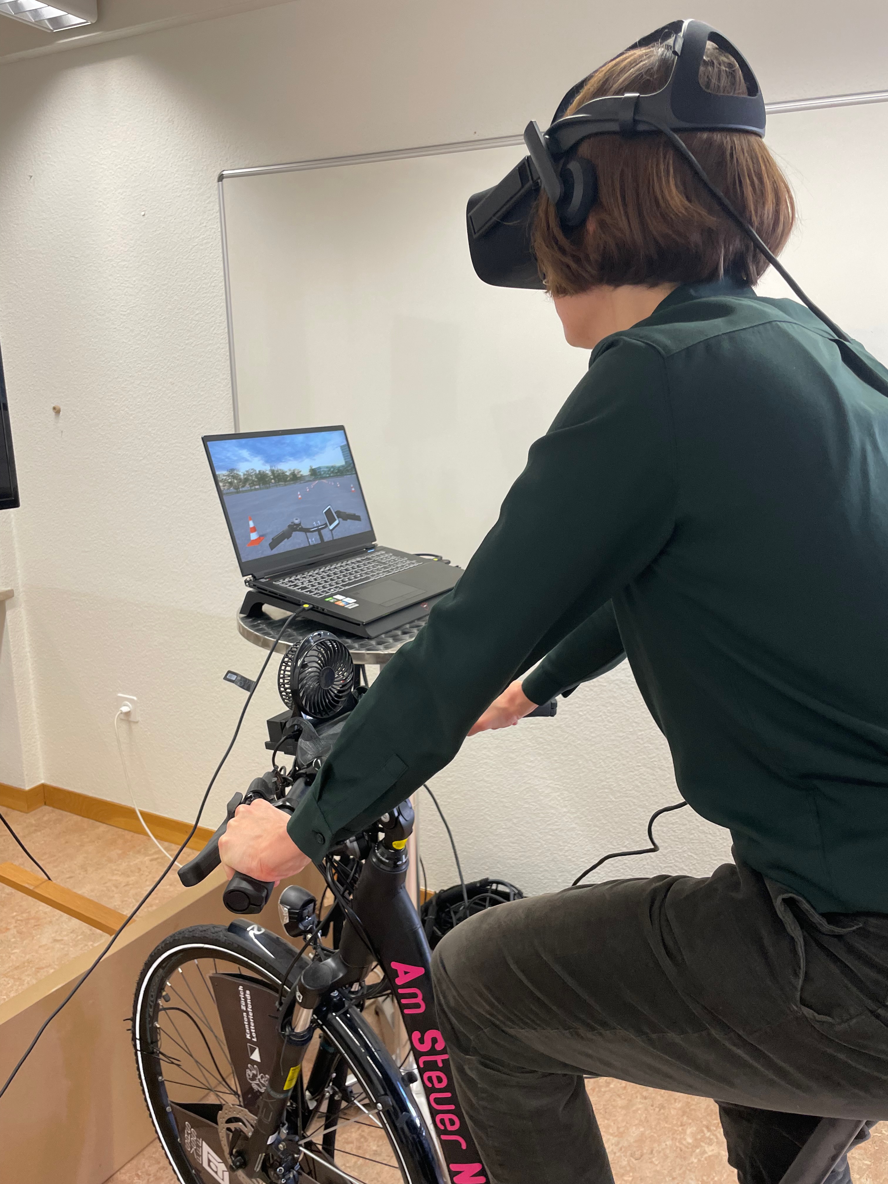 Um zu überprüfen, ob das Training auch tatsächlich das Verhalten der Velofahrenden veränderte, führte das Forschungsteam zudem eine Wirkungsanalyse mit einem Virtual-Reality-Velofahrsimulator (VR-Velofahrsimulator) durch.