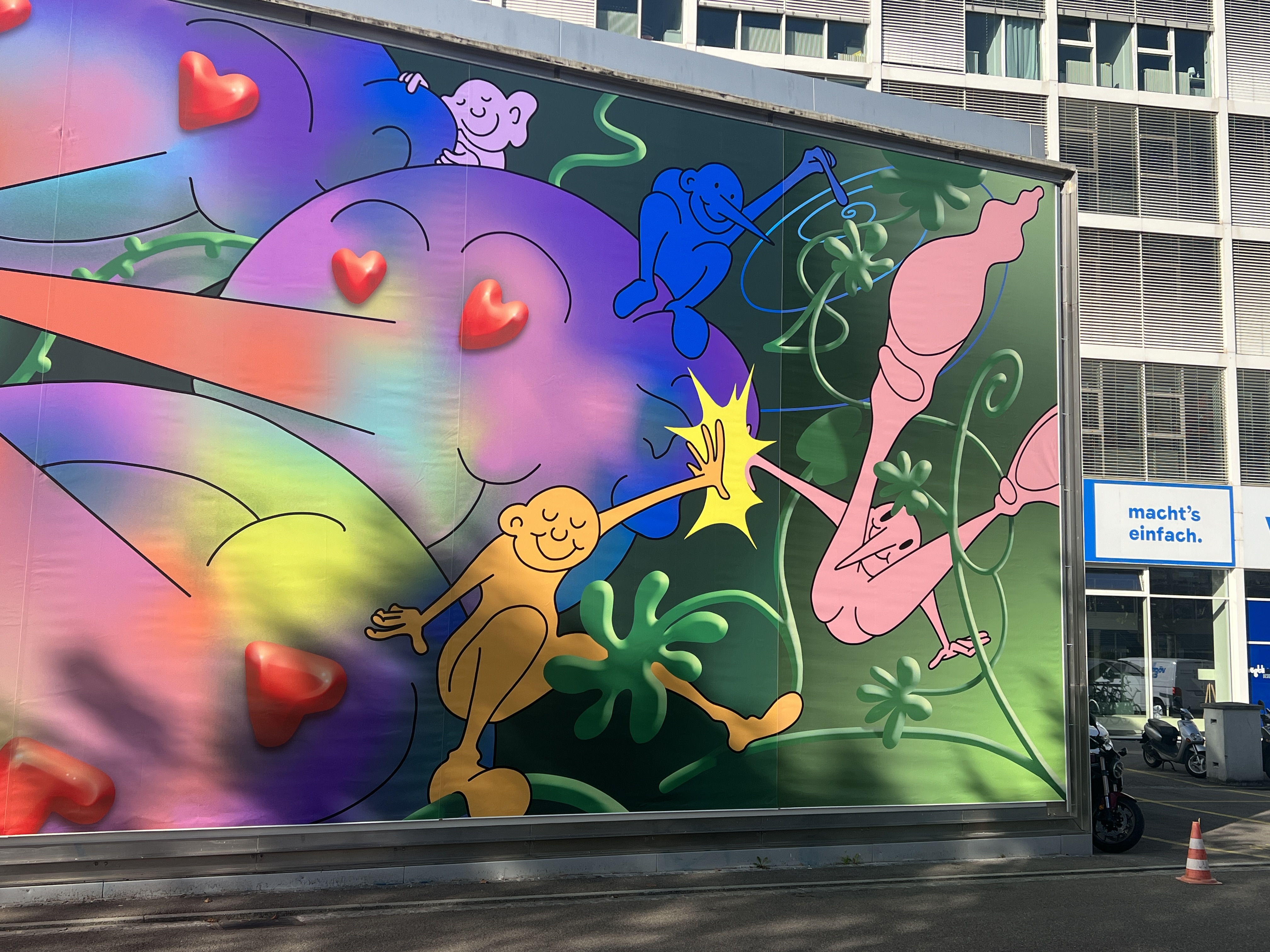 Ein grosses, buntes Bild mit sechs Köpfen, Herzchen in den Augen und langen Nasen wird ab Mitte Oktober 2023 auf der 20 x 6 m Aussenfassade des Pavillons der Hochschule für Gestaltung und Kunst Basel FHNW an der Florenzstrasse auf dem Campus Dreispitz erscheinen. Das CIVIC Billboard ist ein neues, jährliches Format von CIVIC an der HGK Basel FHNW, das die Bedeutung von Kontakt und Austausch in der Hochschulgemeinschaft und darüber hinaus betonen möchte.