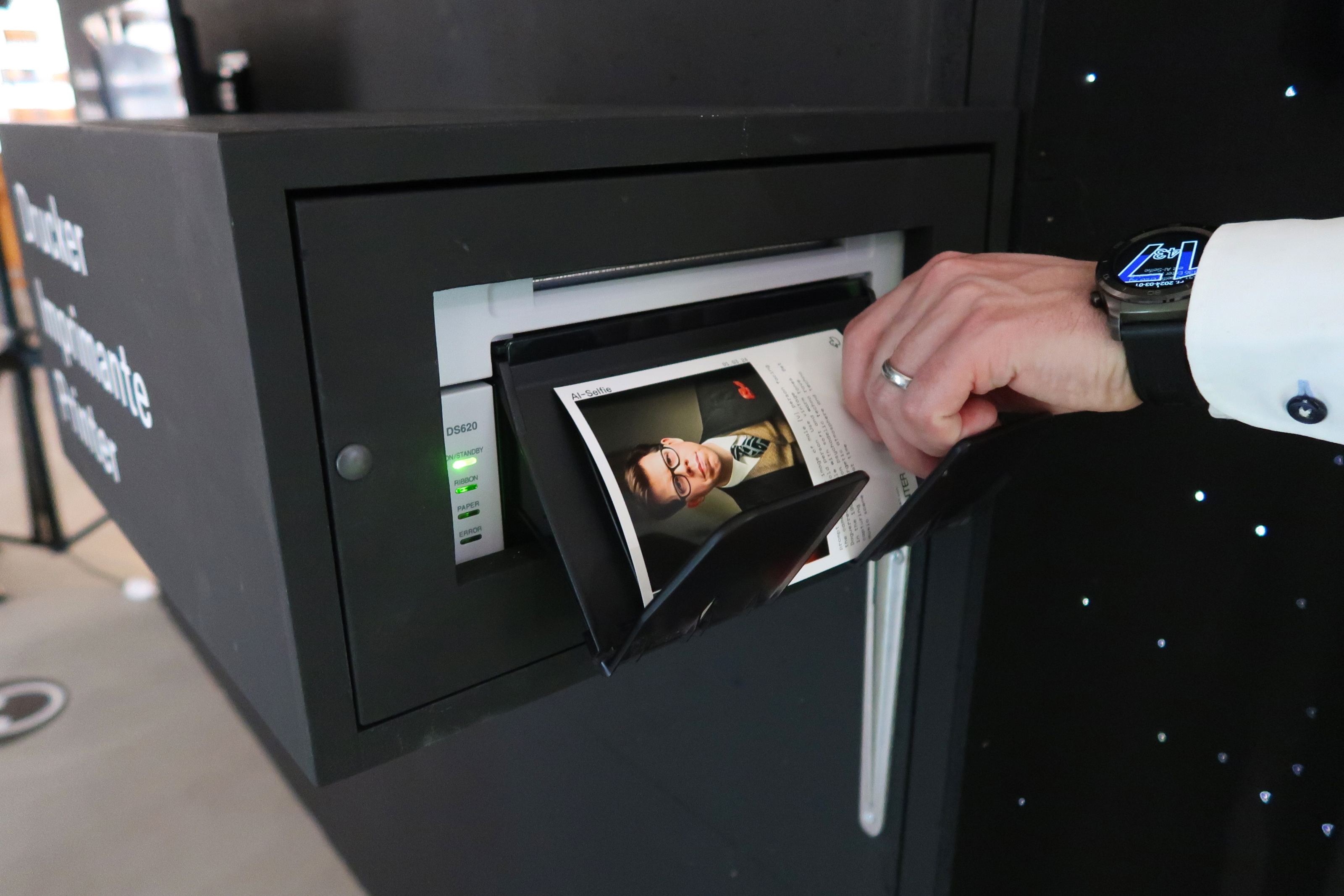 Das Exponat, eine Art Fotoautomat, fertigt aus mit fünf Kameras aufgenommenen Fotos ein 3D-Modell der Traumreisenden. Anschliessend stehen eine Reihe an Prompts zu Verfügung, aus denen ein KI-Modell Bilder erstellt, mit denen sich die fotografierte Person nach Belieben verwandeln kann: In eine Lego- oder Computerspielfigur, in Superhelden oder Astronautinnen, in Kleinkind oder Seniorinnen oder auch als Mensch in eine längst vergangene Epoche.