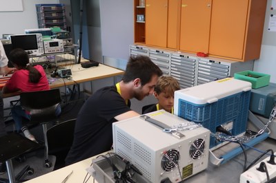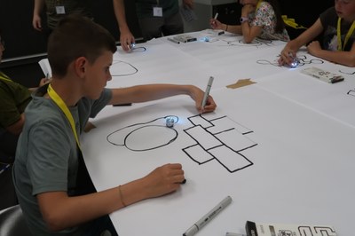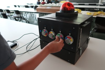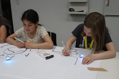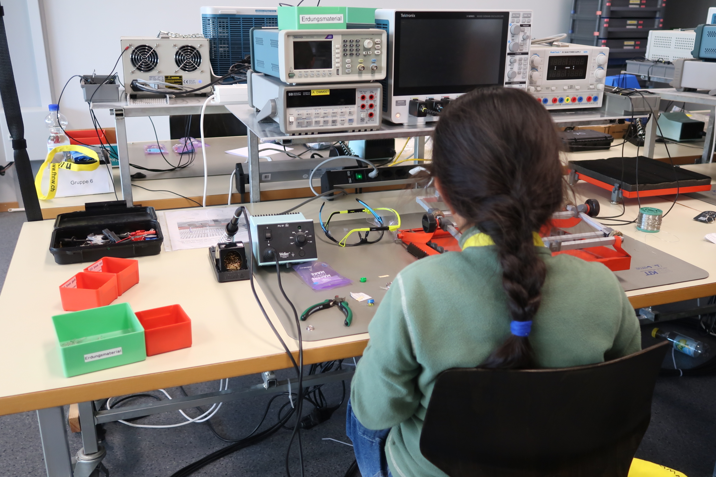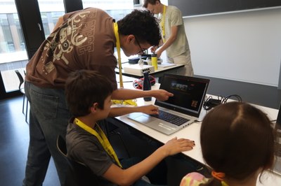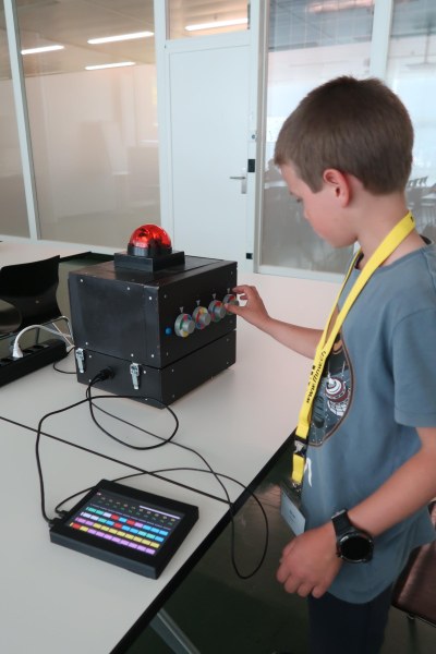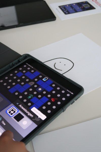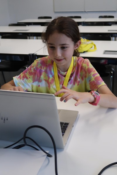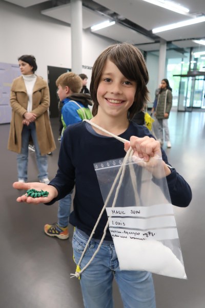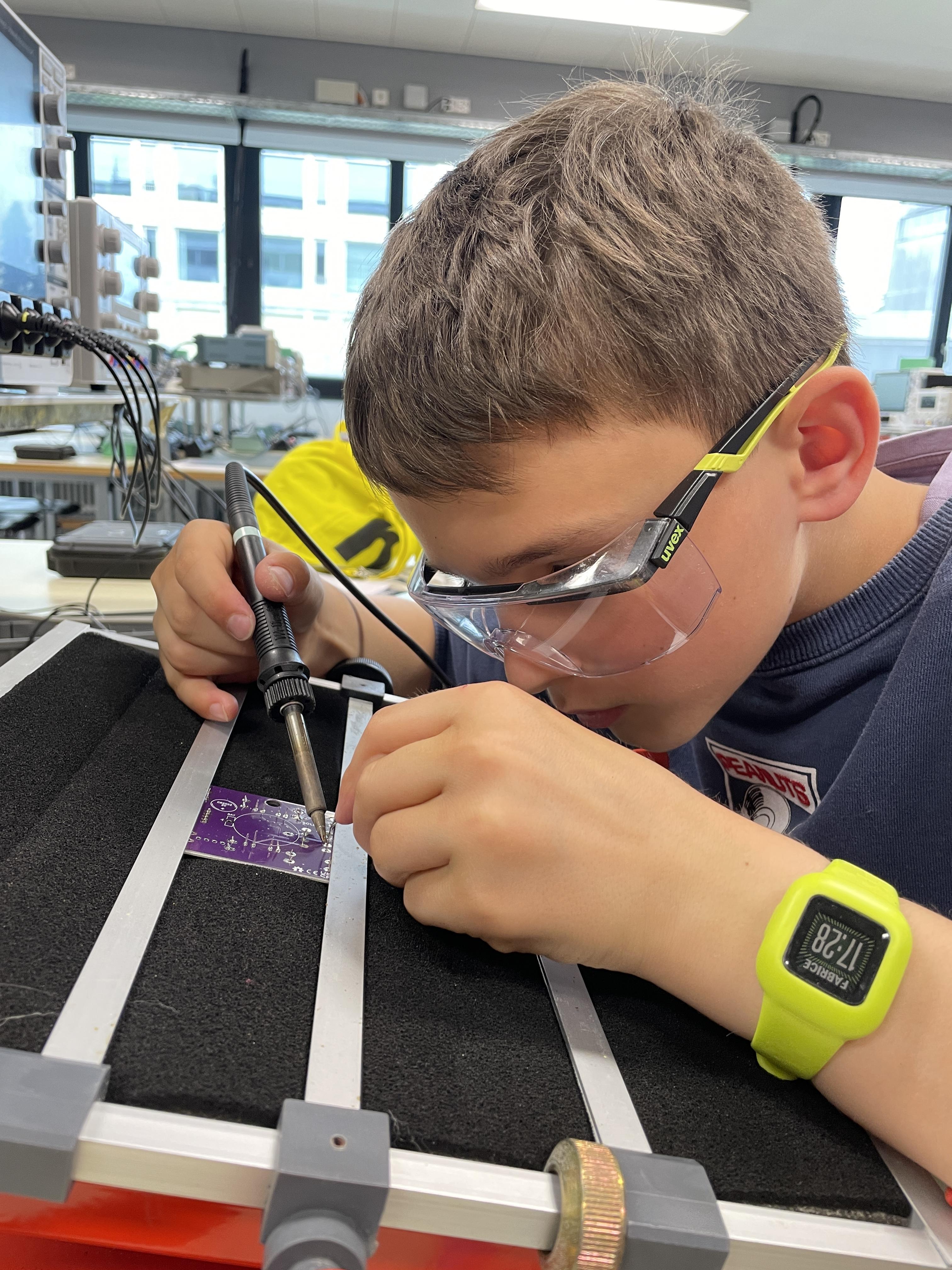 Der Kurs umfasst sechs unabhängige Workshops, in denen Kinder selbst Hand anlegen: In «Lerne löten» bauen sie mit Lötstation, LED, Widerstand und Platine eine funktionstüchtige Taschenlampe – und erfahren dabei spielerisch, wie Stromkreise funktionieren. Im Labor experimentieren sie mit Farbstoffen, künstlichem Schnee und Pipetten. Im Workshop «Analog-digitale Spiele» testen sie ihre Reaktionsgeschwindigkeit mithilfe von Sensoren und einfachen Mikrocontrollern, bevor sie – in Zusammenarbeit mit der Pädagogischen Hochschule FHNW – ihr eigenes Pac-Man-Spiel programmieren. Dabei gestalten sie nicht nur Spielfiguren selbst, sondern setzen auch Spielregeln, Animationen, Bedingungen und Wiederholungen mit visuellen Programmiertools um.