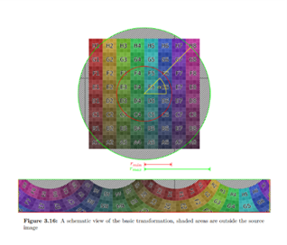 Eine weitere zentrale Aufgabe der Bachelor-Arbeit betraf die geometrische Umwandlung der runden Sonnenbilder. Diese wurden ohne Verzerrung auf eine zylindrisch gewölbte Projektionsfläche übertragen, um die Illusion einer Perspektive nahe an der Sonnenoberfläche zu erhalten: