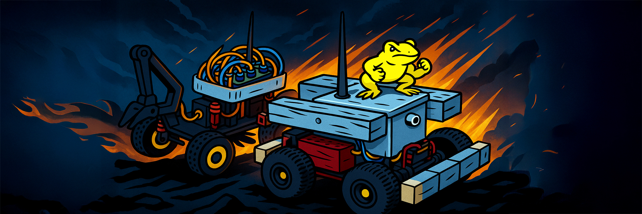 Beide Fahrzeuge sind ferngesteuert und wurden für Gelände- und Wasserpassagen sowie für die sogenannte «Blackbox» vorbereitet – einen dunklen, lichtdichten Bereich, in dem die Fahrzeuge ohne Sicht magnetische Objekte einsammeln müssen.