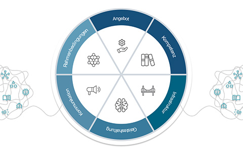Die Ausbildung der sprachlichen, betriebswirtschaftlichen und sozialwissenschaftlichen Kompetenzen erfolgt studiengangübergreifend. Du kannst Module in den Bereichen Betriebswirtschaftslehre, Kommunikation, Englisch, Geschichte, Ethik und Nachhaltigkeit wählen. Du besuchst diese Angebote nicht mit deinen Kolleg*innen aus dem gleichen Studiengang, sondern mit Mitstudierenden der Hochschule für Informatik und der Hochschule für Technik und Umwelt, die ähnliche Interessen und Vorkenntnisse mitbringen.