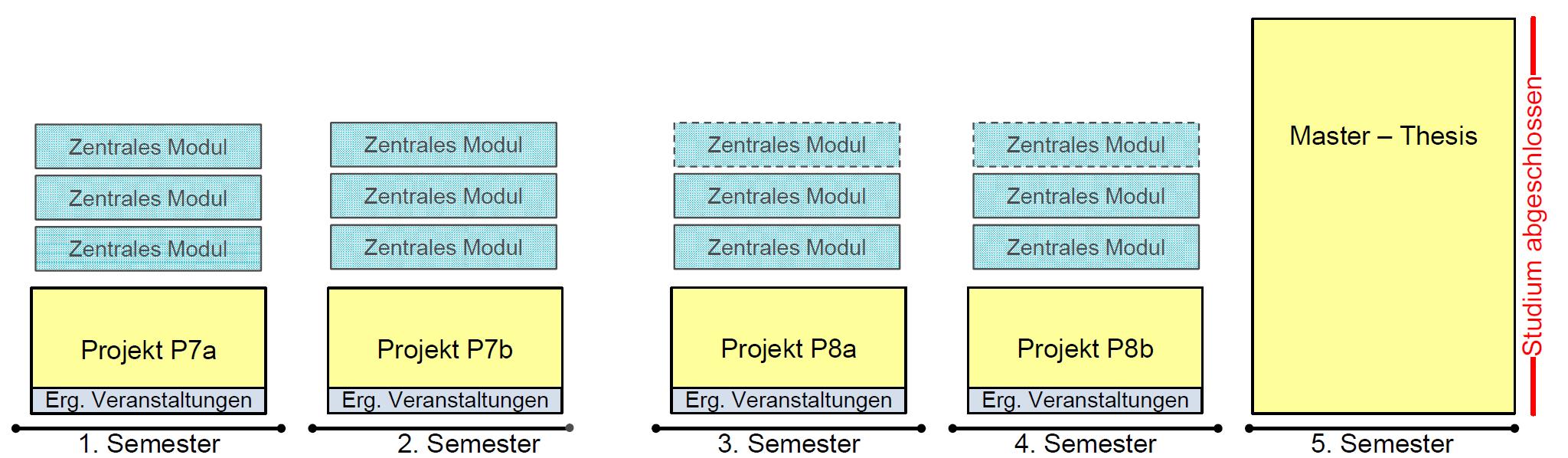 - 30 ECTS durch die Fachliche Vertiefung (Projektarbeiten, ergänzende Veranstaltungen)