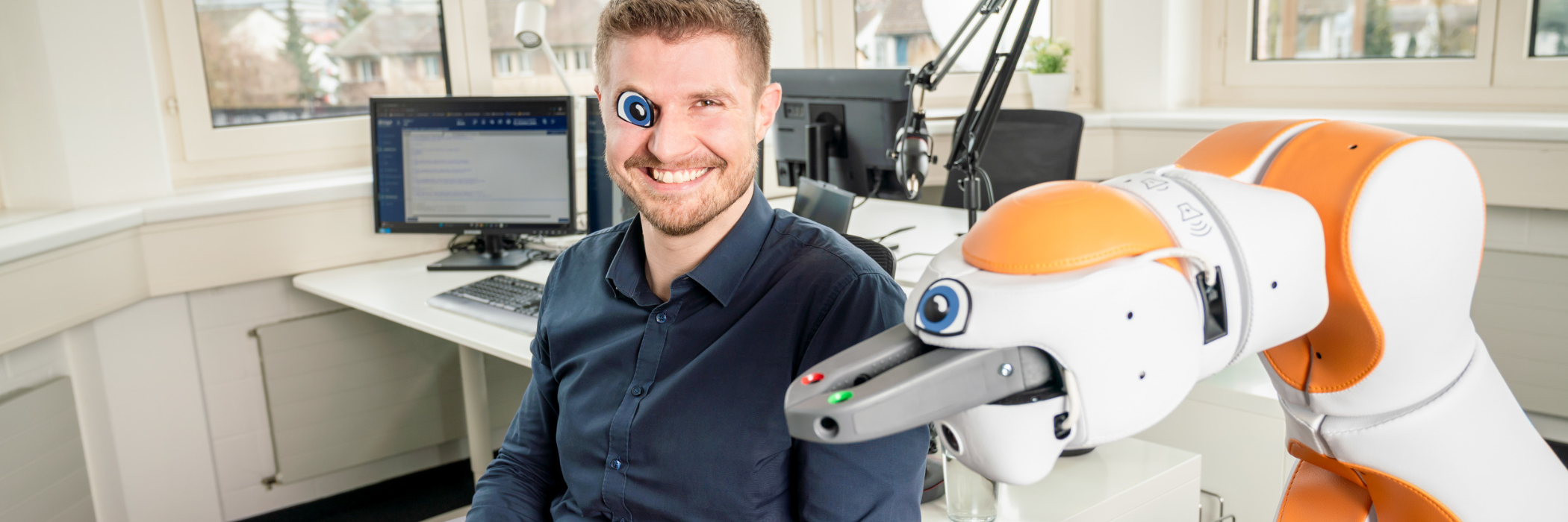 Psychologie und Robotik im Gesundheitswesen – Gabriel Friedli ist an der Schnittstelle von drei spannenden Themenfeldern tätig. Durch sein Master-Studium in Angewandter Psychologie hat er sich ein Kompetenzprofil mit Alleinstellungsmerkmalen erarbeitet.
