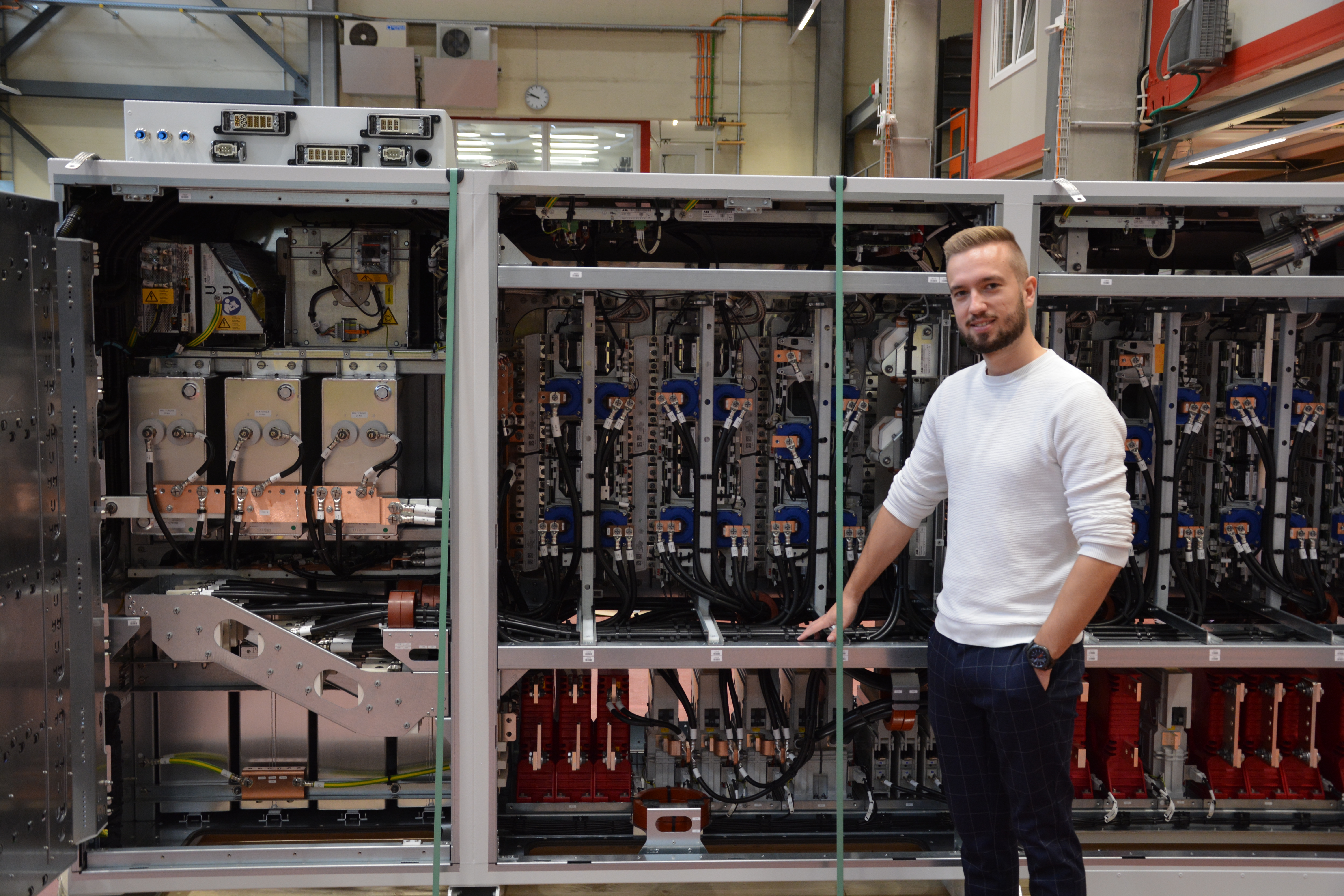 Im Nachhinein sehe ich, wie gut mich das Studium für den Berufseinstieg vorbereitet hat. Denn alles Wissen, das ich brauche, bringe ich tatsächlich mit, und das Meiste, das ich anwende, habe ich im Studium bereits einmal angewendet. Zurzeit beschäftige ich mich mit der Connectionbox, die zwei LC-Filter beinhaltet, um die Spannung für die Batterie und den DC-Zwischenkreis hoch- und herunterzuwandeln. Dafür habe ich die Schnittstellen definiert, das Blockschaltbild erstellt und werde die dazugehörigen Schemata und alle notwendigen Dokumente erstellen – alles, wie wir es in den Projekten 3 und 4 gemacht haben. Überhaupt durchläuft man bei ABB den ganzen Prozess: Man ist von A bis Z beim Projekt dabei. Unterstützung des Vertriebs in der Konzept- und Ausschreibungsphase, Auslegung von Leistungselektronik für neue Bordnetz- und Traktionsumrichterlösungen, technische Anforderungen mit Kunden definieren, Durchführen von Simulationen und Typenprüfungen aber auch Unterstützung der Reparatur- und Testabteilung sind nur einige der täglichen Aufgaben in meinem abwechslungsreichen Arbeitsalltag. Vor allem die detaillierten Tests sind bei einem Projekt wie dem Baustellenfahrzeug, das in die Produktion geht, enorm wichtig. Es finden laufend Revisionen statt, Meetings, an denen alles besprochen wird. Kommunikation ist essentiell. Und es sind immer mehrere Personen an den Tests involviert, nach dem Mehr-Augen-Prinzip. Das ist Engineering.
