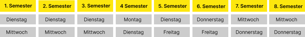 Nachfolgend eine mögliche Verteilung der Unterrichtszeiten über die vier Jahre: