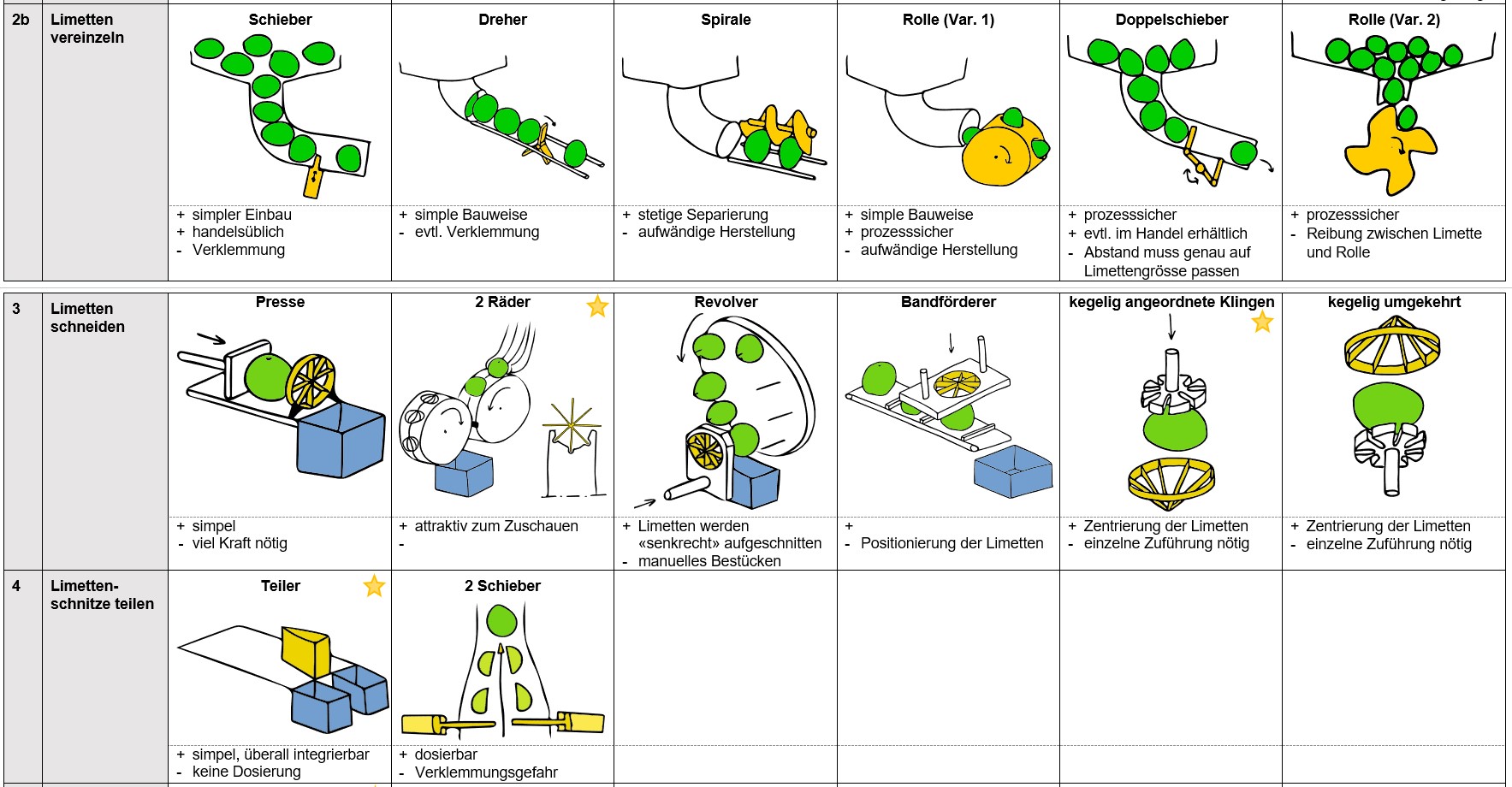 - Limetten zuführen und vereinzeln