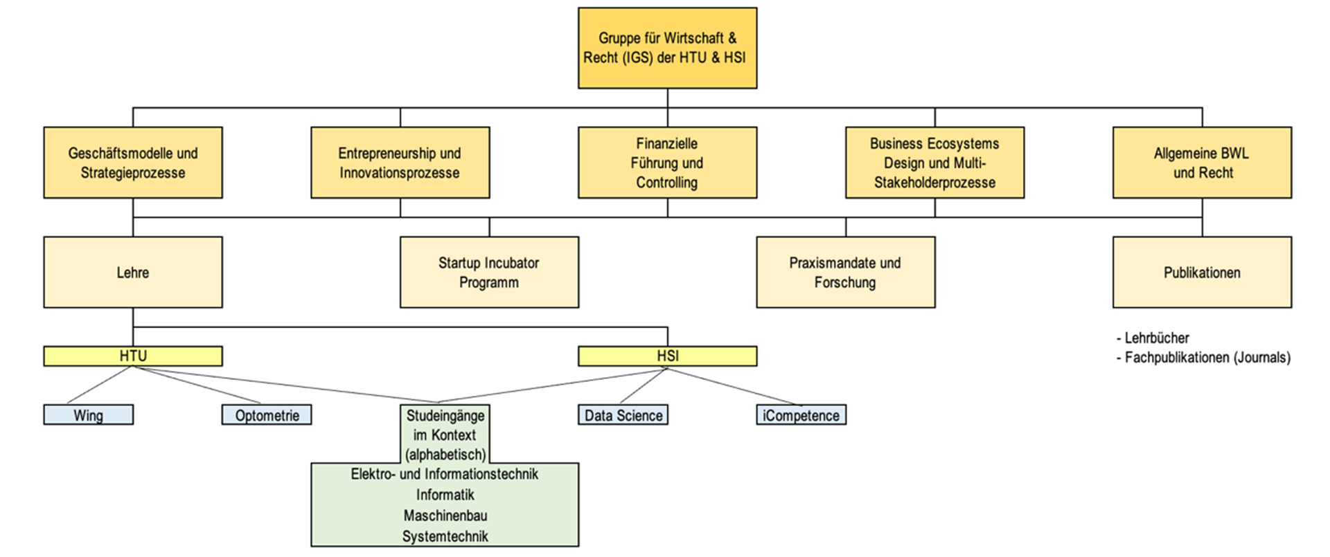 Wir bilden die nächste Generation Ingenieur*innen, Informatiker*innen, Data Scientists & AI-Expert*innen aus. Dabei unterstützen wir Studierende beim Erwerb wirtschaftlicher und rechtlicher Kernkompetenzen für fachlich und unternehmerisch erfolgreiche Karrieren in einer dynamischen, aufregenden und zugleich herausfordernden Arbeitswelt. Zudem begleiten und unterstützen wir Organisationen von Startups, über KMUs bis hin zu Grossunternehmen bei der Lösung anstehender unternehmerischer Herausforderungen. Hierfür wenden wir aktuellste Tools, Methoden und Prozesse an.
