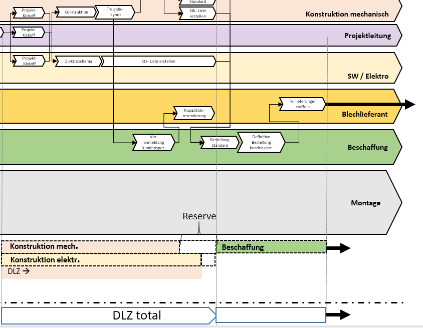 Andererseits ergaben detaillierte Analysen der Abläufe bei den Lieferanten weitere Optimierungsmöglichkeiten. Zusätzliche Gespräche führten zu einer veränderten Zusammenarbeit, die den Ablauf um mehre Wochen beschleunigt. Das Ergebnis ist ein Konzept mit einem Massnahmenplan, welcher bei Bachmann Engineering AG eingeführt wird. Der neu gebildete Prozess ist in einem Stellenablaufdiagramm festgehalten. Mittlerweile befindet sich dieser bereits in einer Testphase.
