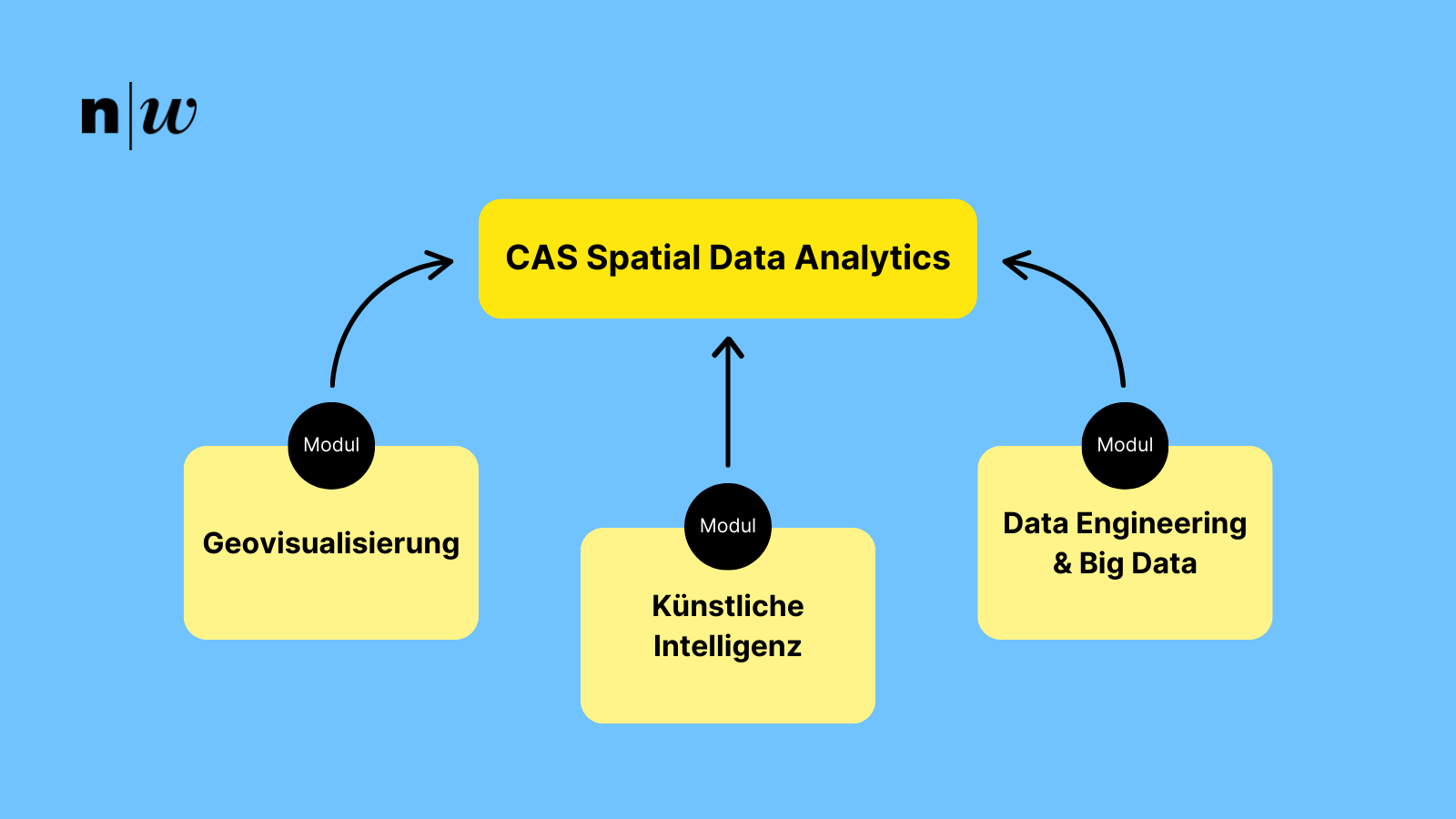 - Modul Data Engineering & Big Data: Datenaufbereitung, Integration und Automatisierung von Geodatenprozessen. Big Data: Umgang mit grossen, komplexen Datenmengen und deren Aufbereitung für aussagekräftige Analysen.
