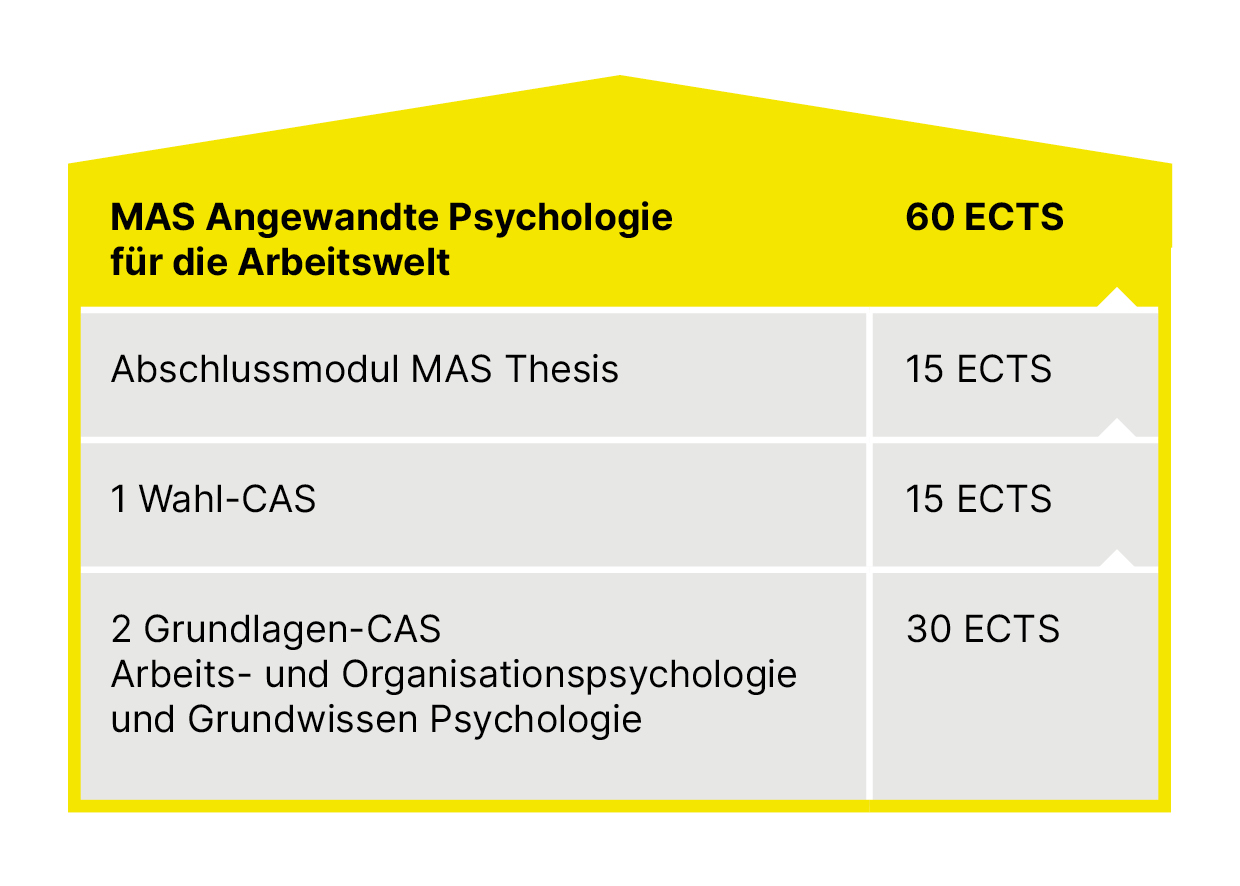 Es stehen Ihnen verschiedene CAS-Kombinationen zur Auswahl. Die Zusammenstellung dieser Auswahl bestimmt, mit welcher Vertiefung Sie den MAS Angewandte Psychologie für die Arbeitswelt absolvieren. Hier erfahren Sie mehr zum Konzept.
