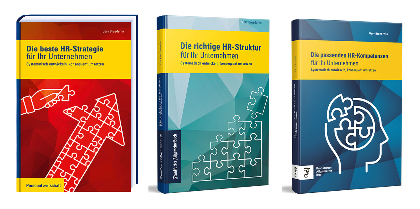 Bestellen Sie hier das neueste Werk "Die passenden HR-Kompetenzen für Ihr Unternehmen" (2023) oder "Die richtige HR-Struktur für Ihr Unternehmen" (2021) oder "Die beste HR-Strategie für Ihr Unternehmen" (2019). Einzelpreis pro Werk: je CHF 35 / Bei zwei Büchern: CHF 32 pro Band / ab 3 Büchern: CHF 30 pro Band