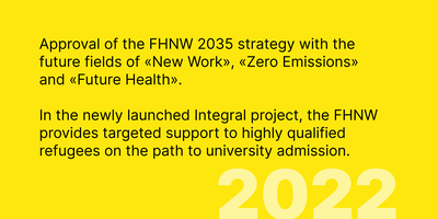 That the four cantons of Aargau, Basel Landschaft, Basel Stadt and Solothurn agreed at the start of the third millennia on the founding of a joint university can only be understood in retrospect as a remarkable achievement. The brochure makes it clear – The FHNW project was a visionary undertaking that required a great deal of courage, energy and assertiveness from all those responsible – and was ultimately rewarded with success.