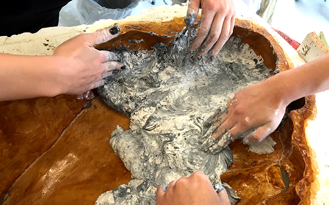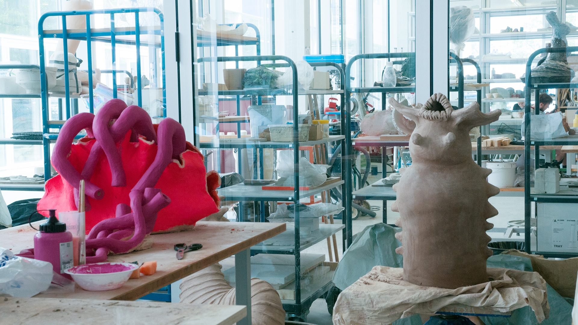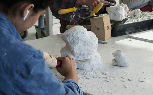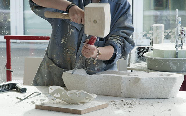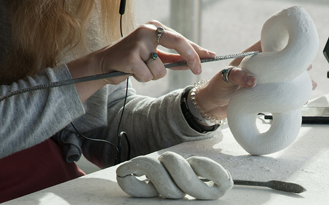 Students are busy making models, plasticizing, ceramic printing, as well as using different casting techniques. They, for instance, work on sculptures, objects and installations, on industrial design models, on architectural models as well as on body moulding and accessories. Basic knowledge in dealing with spatial design is acquired too.
