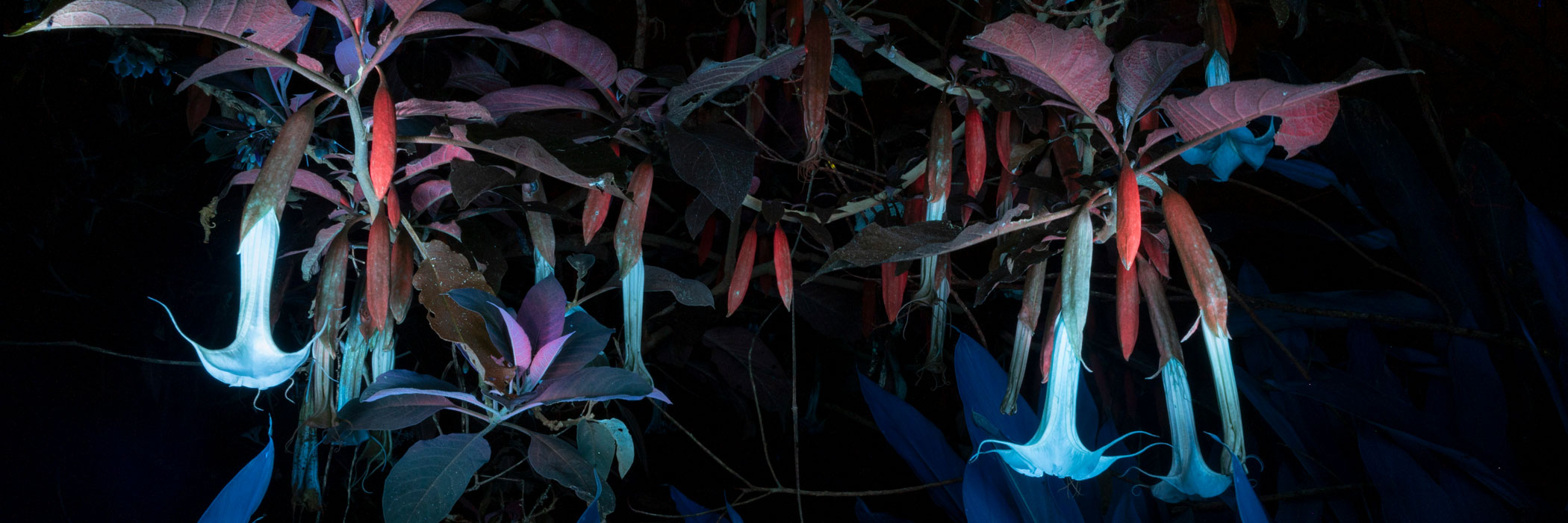 For some of the artworks on display, the findings of the natural sciences are indispensable: Felipe Castelblanco, Julia Mensch and Rasa Smite have dedicated themselves to the artistic research of three plants since 2022: the angel's trumpet, the amaranth and the sweet lupine. Their works were created alongside those of Ayênan Quinchoa Juajibioy and Ursula Damm as part of the artistic research project Plants_Intelligence. Plants will probably be seen with different eyes after visiting the exhibition.