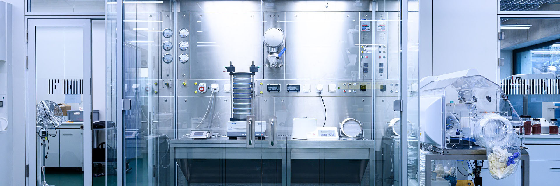 From (bio)pharmaceuticals and (bio)chemistry to environmental and natural product technology - in all fields, the PTC offers the same process systems used in industry. In addition, equipment is embedded in the appropriate environment, such as a clean room and Ex-zone for solvents. All the processes required to carry out a new procedure, from preparation to finished product, can be modelled and run in the PTC. Our highly specialised staff provide expert support.
