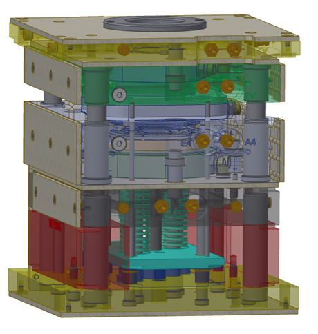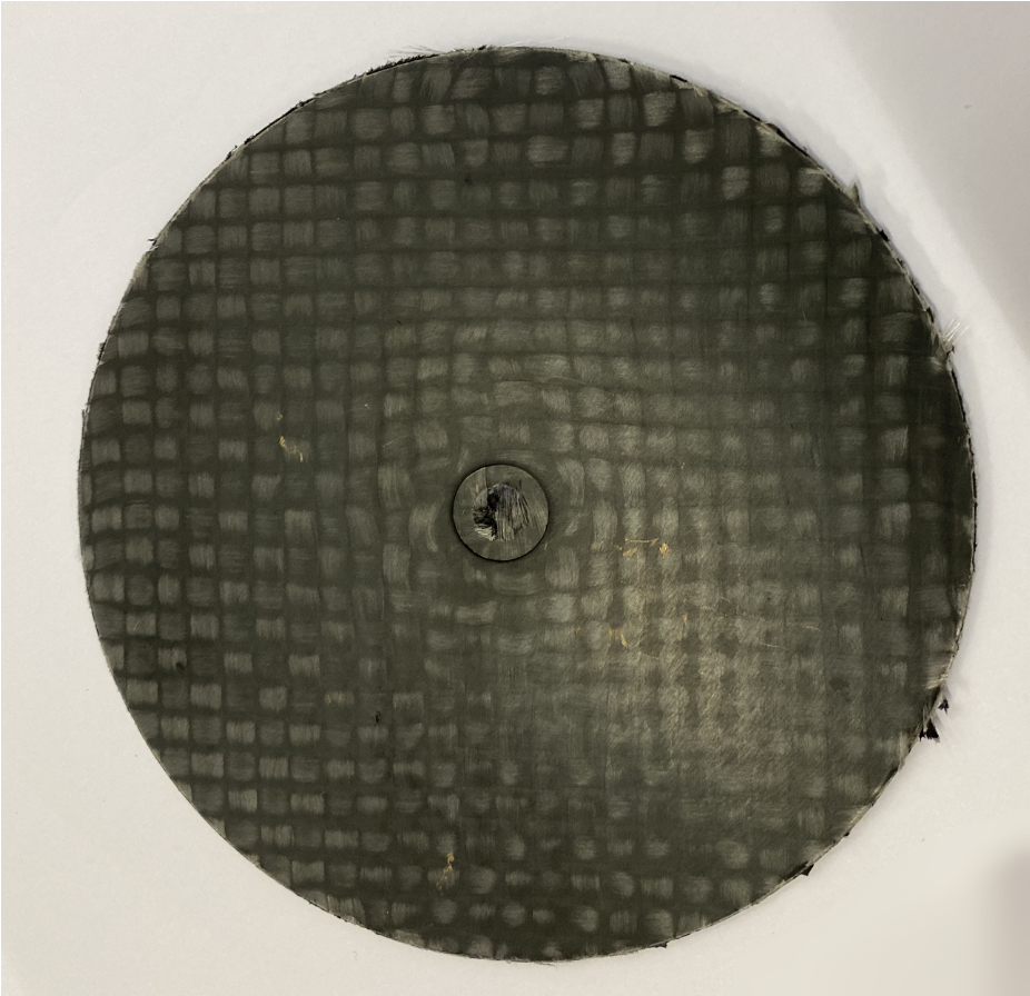 A novel tool with a variothermal sealing was designed and successfully implemented. Finite-Element analysis (FEA) was performed to define appropriate process parameters and to ensure sealing. Figure 3 shows the plates that were produced with the novel tooling with a diameter of 100mm and 2mm thickness. They display an elevated fibre volume fraction, advantageous mechanical properties and could be manufactured with a cycle time shorter than 10 minutes.