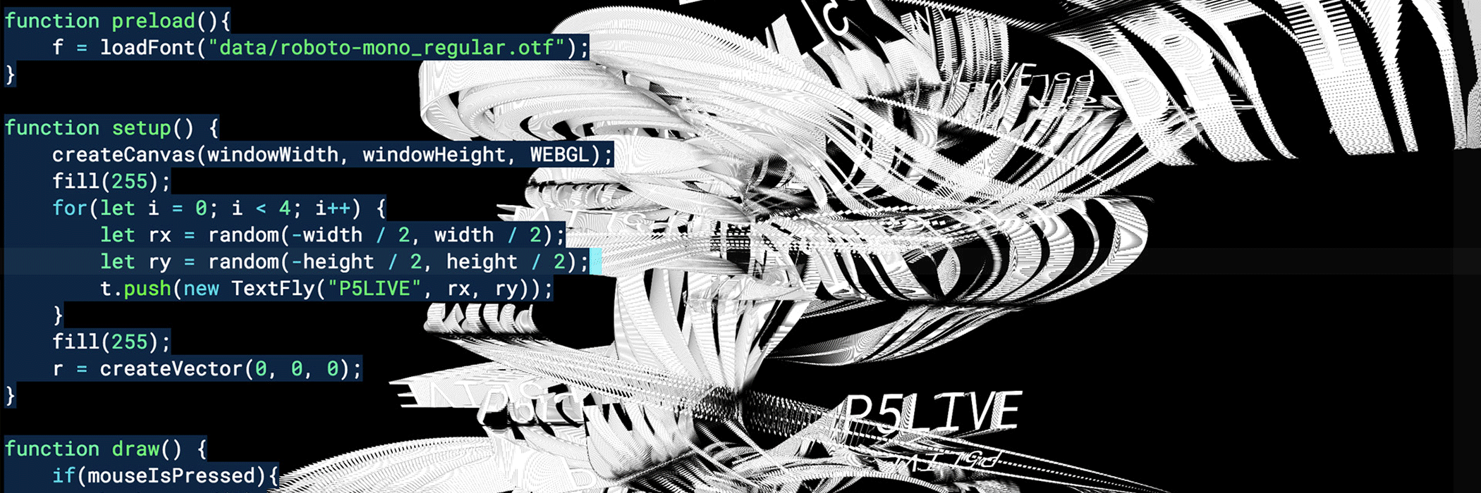 As designers embraced the computer decades ago, the mouse became a crucial tool to implement one’s ideas in the digital domain. From the early 2000s, programming frameworks enabled artists and designers to express themselves and create their own tools, commonly referred to as creative coding. Since the 2010s, a new era of frameworks has taken advantage of web browsers’ increased speed and capability, utilizing the HTML5 Canvas element as a sandbox for interaction. With the help of one of those frameworks, p5.js, one can quickly get up and running to code motion graphics, interactive visuals for a website, custom tools with GUI elements, and much more! By using dynamic inputs such as mouse movements, random chance, or time of day, one can influence parameters controlling the design of images, shapes, typography, to name just a few. This exciting realm of infinite possibilities, where every rendering can be unique, is what we mean by generative design. In this workshop (intended for both absolute beginners and experienced coders alike), we shall dive right into key functions for generating forms and type, setting them into motion, allowing user interaction to influence them and design our own digital tools for visual communication. In this workflow, we shall explore live coding, using a custom environment, where one sees instantaneous visuals as the code changes. Therefore, we shall have to take it one small step further and make our sketches audio-reactive, just in case you plan to VJ on the weekend.