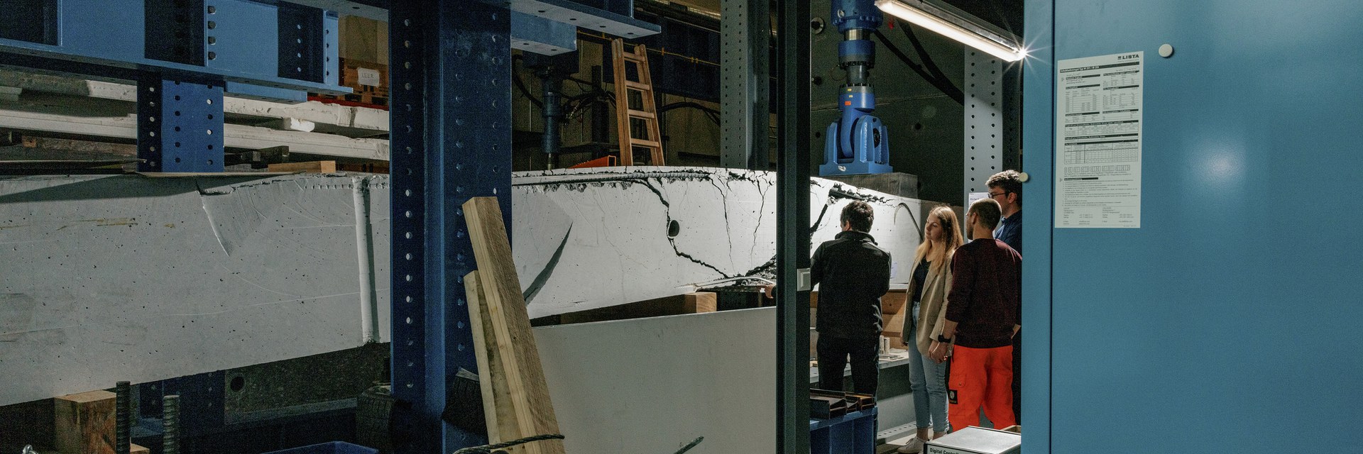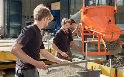 The specialization takes place at FHNW and includes the completion of two specialization projects, the master's thesis, as well as participation in supplementary seminars and events. The Master's program at the Muttenz campus is heavily influenced by the experimental capabilities of the modern construction laboratory at FHNW. Please refer to the following impressions of the construction laboratory.