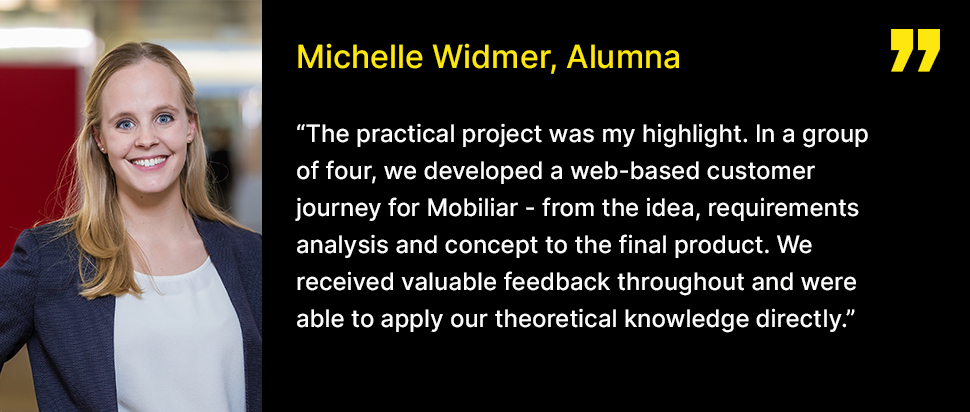 Here at the FHNW University of Applied Sciences and Arts Northwestern Switzerland, you will gain real insights into the professional world as part of your studies. Whether in a practical project, during your bachelor’s thesis or in project-based modules, you will directly experience the challenges that companies have to overcome.