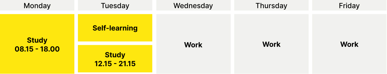 In your first year, you will develop competencies in core subjects, forming the foundation for your further studies. For this reason, you must complete several basic courses in the first semesters. This part is called the Assessment.