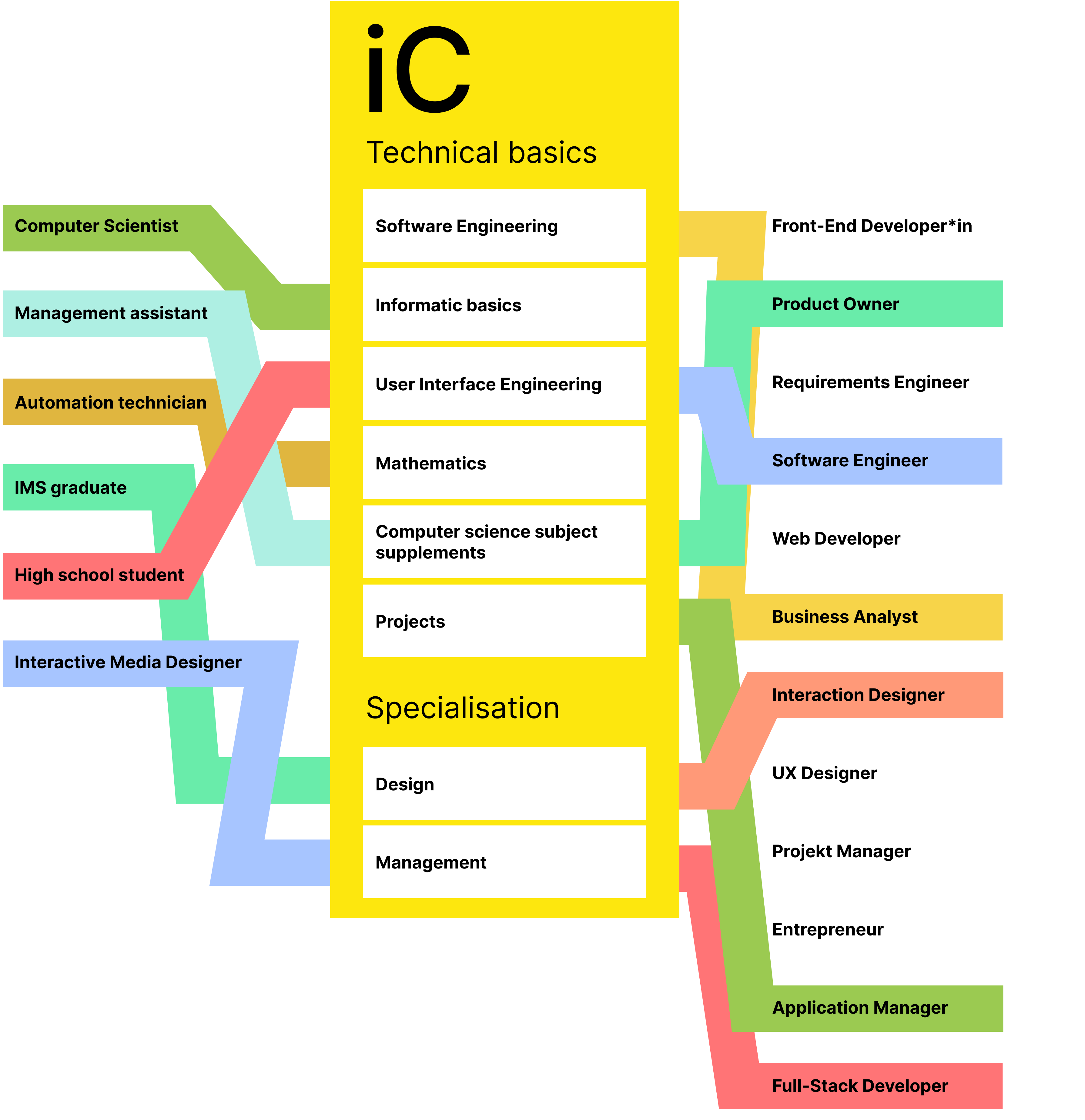 The term iCompetence was coined at FHNW. It represents a unique program in Switzerland. Design & Management (iCompetence) is an interdisciplinary study track – it combines computer science with design topics and management competencies. During your education, you'll implement projects at the interface of humans and technology: You'll acquire solid foundational knowledge in computer science, design user-centered IT solutions, and expand your management skills.