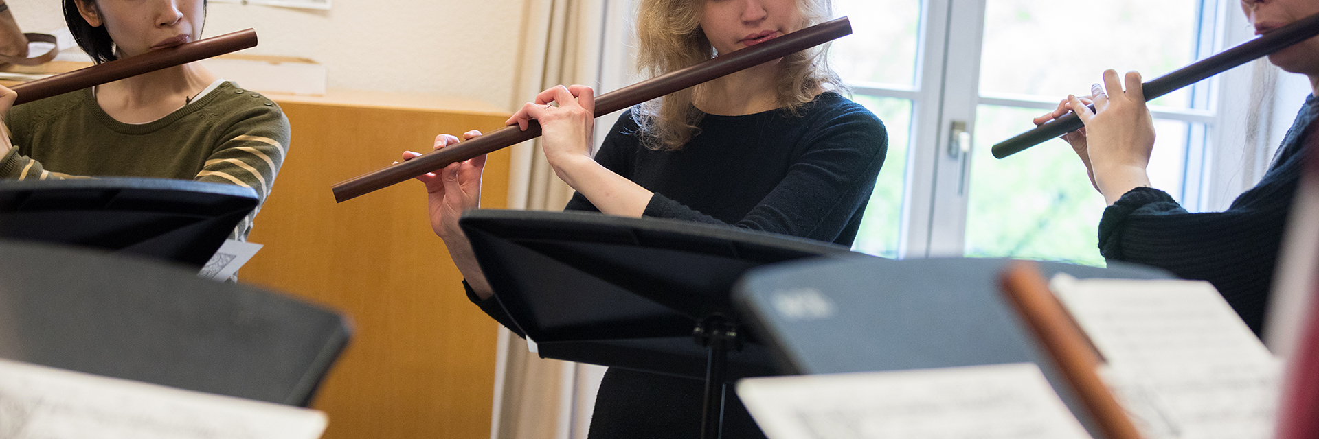 What sets certain major instruments (baroque bassoon, baroque oboe, recorder, harpsichord, voice, lute, organ, viola de gamba) apart from others is a current and ongoing demand for teachers of these instruments. Consequently, the SCB offers these majors as part of its regular MA in Music Pedagogy programme. Other instrumental majors that exist in a modern form (violin, cello, fortepiano, flute, trombone etc.) are only offered through the SCB under special conditions and generally require a previous Master's degree on the modern instrument.Such holders of a recognised Master’s degree may, in close consultation with the FHNW School of Music, tailor their Music Pedagogy studies to their chosen instrument. The relevant instrumental teaching methodology classes are dispensed by the HSM.