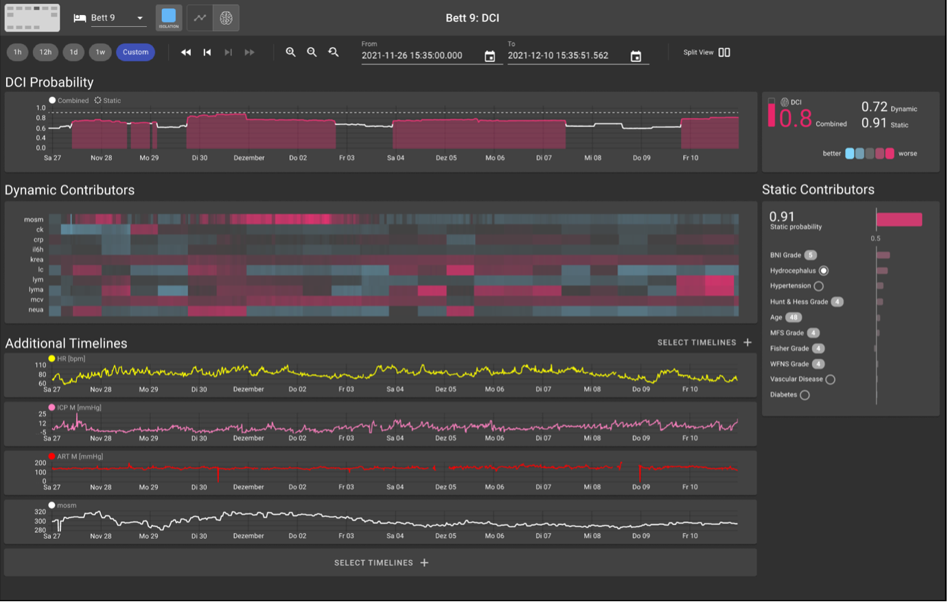 In the context of multiple research projects, our team is developing the "ICU Cockpit" user interface, a dashboard for the Neurosurgical intensive care unit of the University Hospital Zurich.